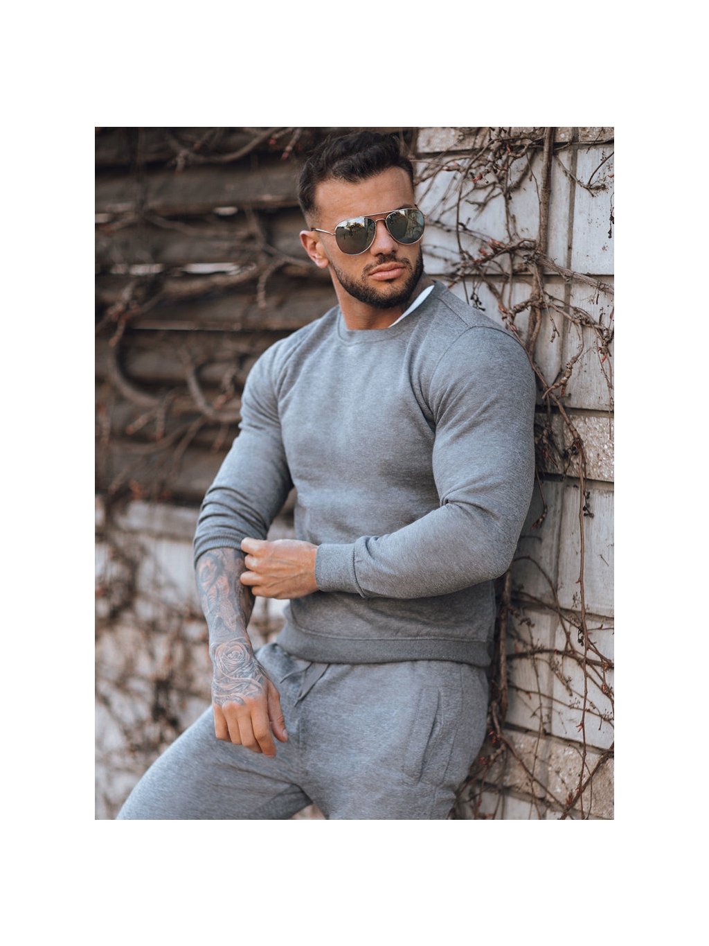 Szürke férfi kapucni nélküli pulóver
