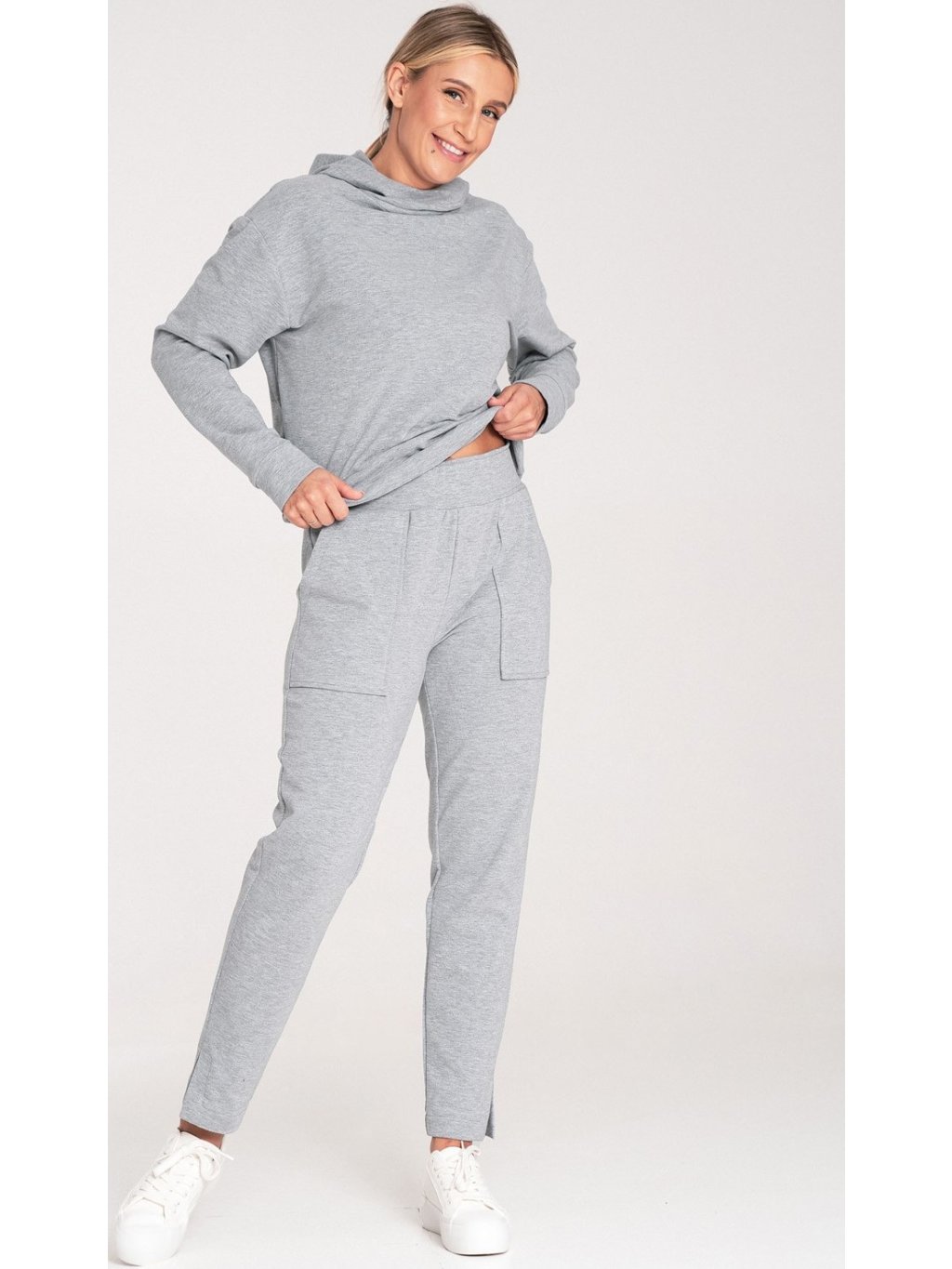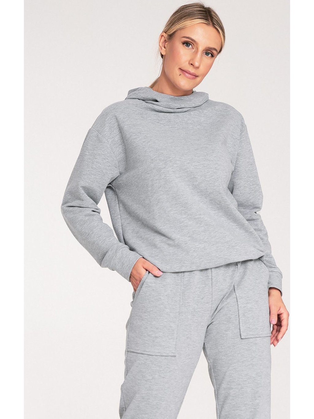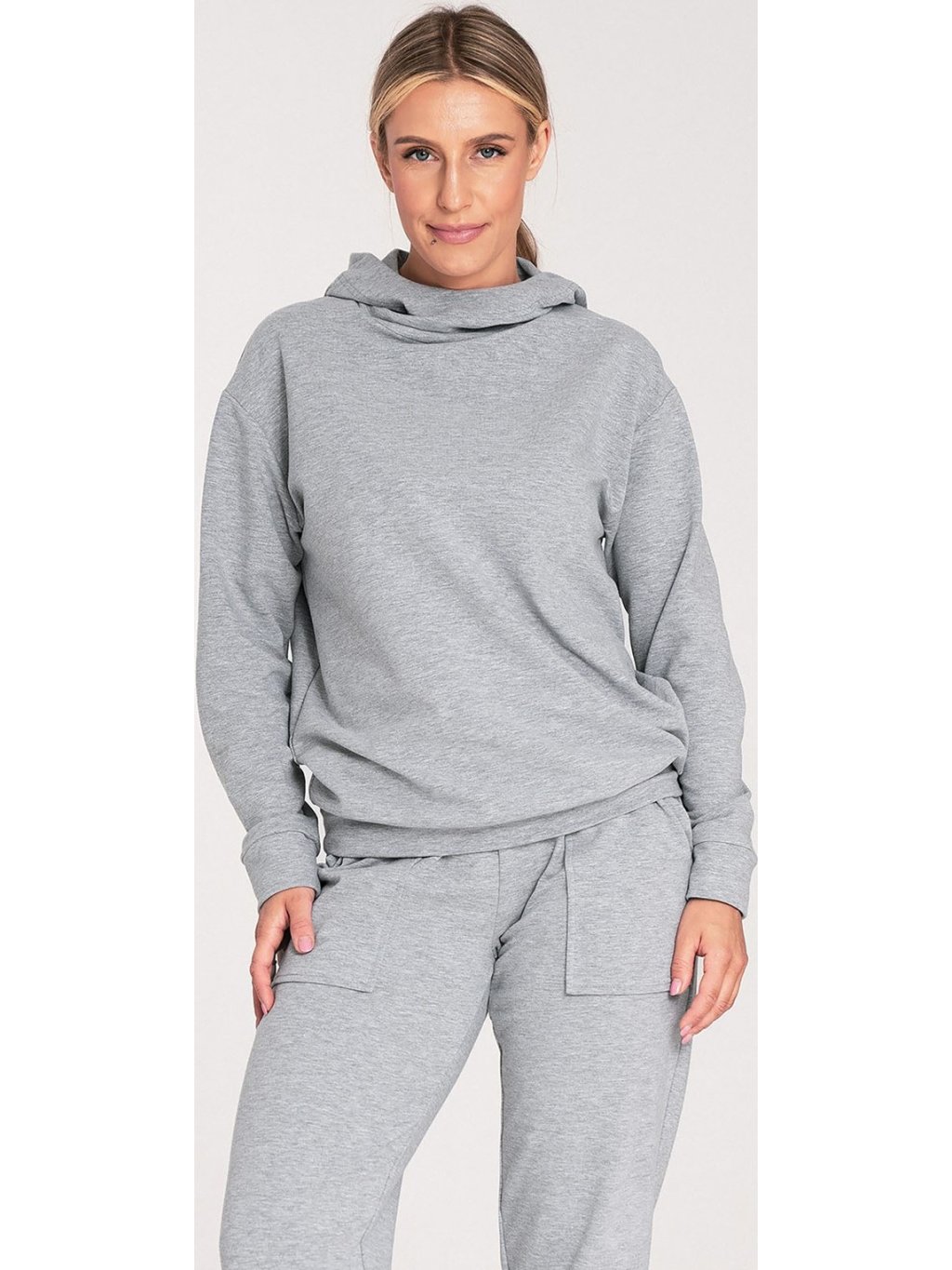 Szürke női pamut kapucnis pulóver