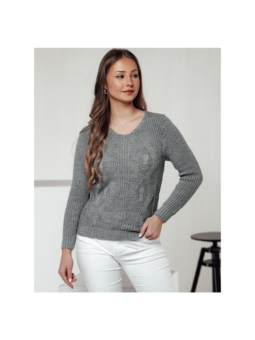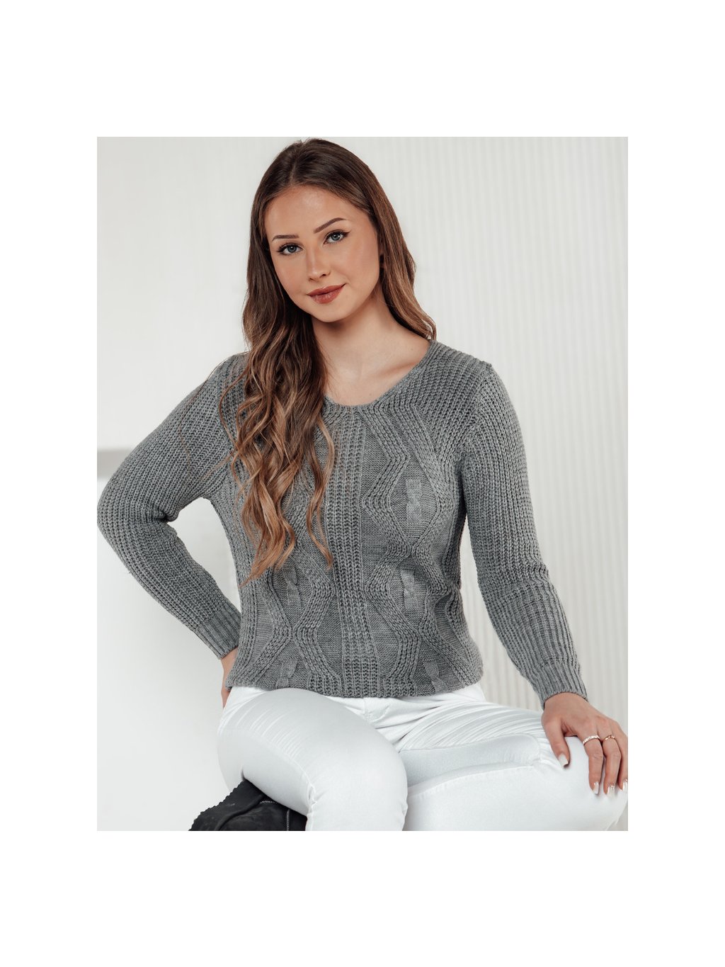 Szürke női pulóver finom mintával CHICRAY