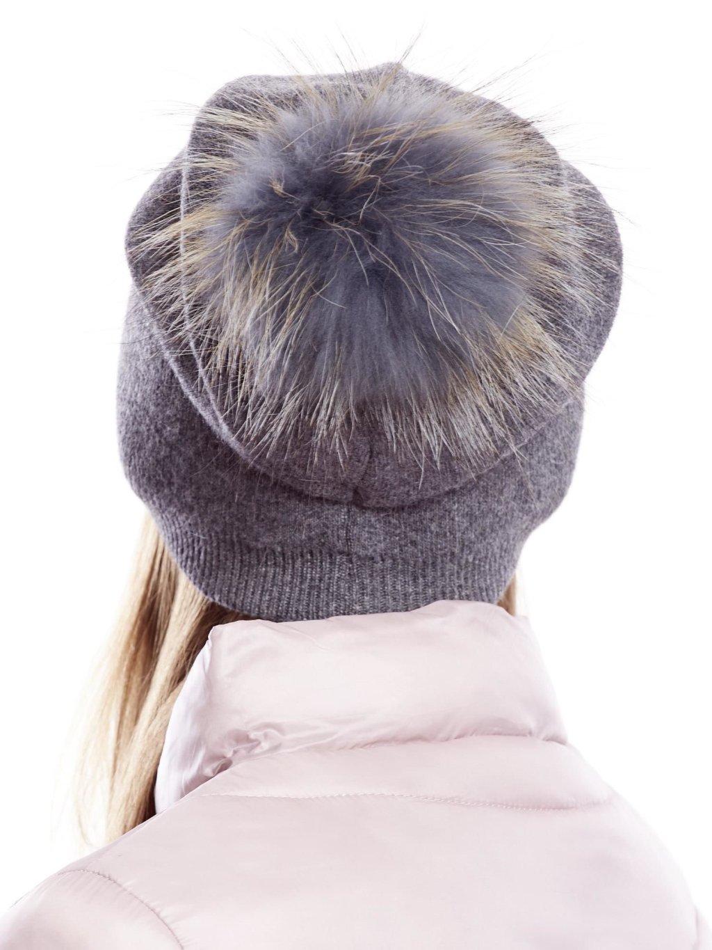 Szürke női sapka pompommal (Méret ONE SIZE)