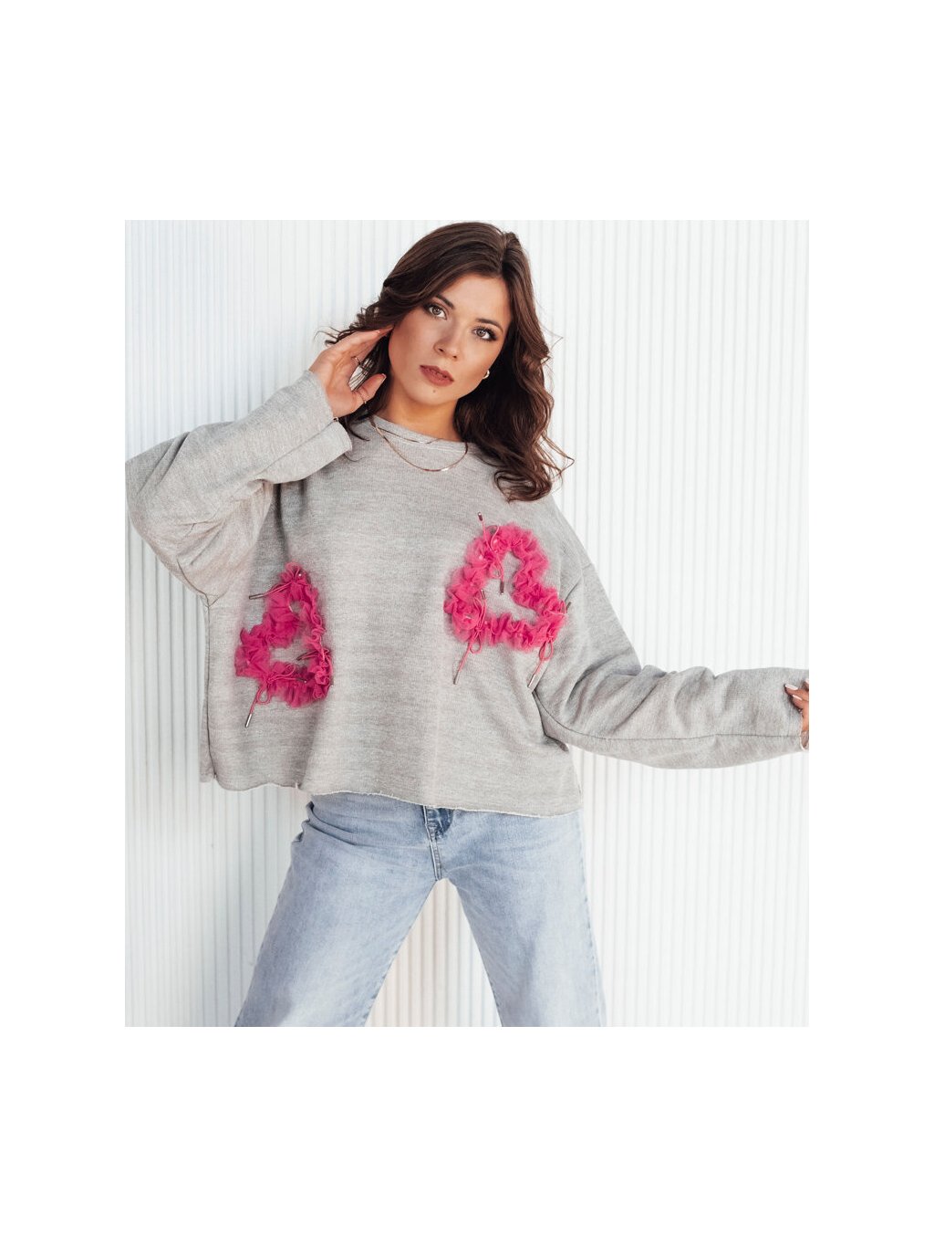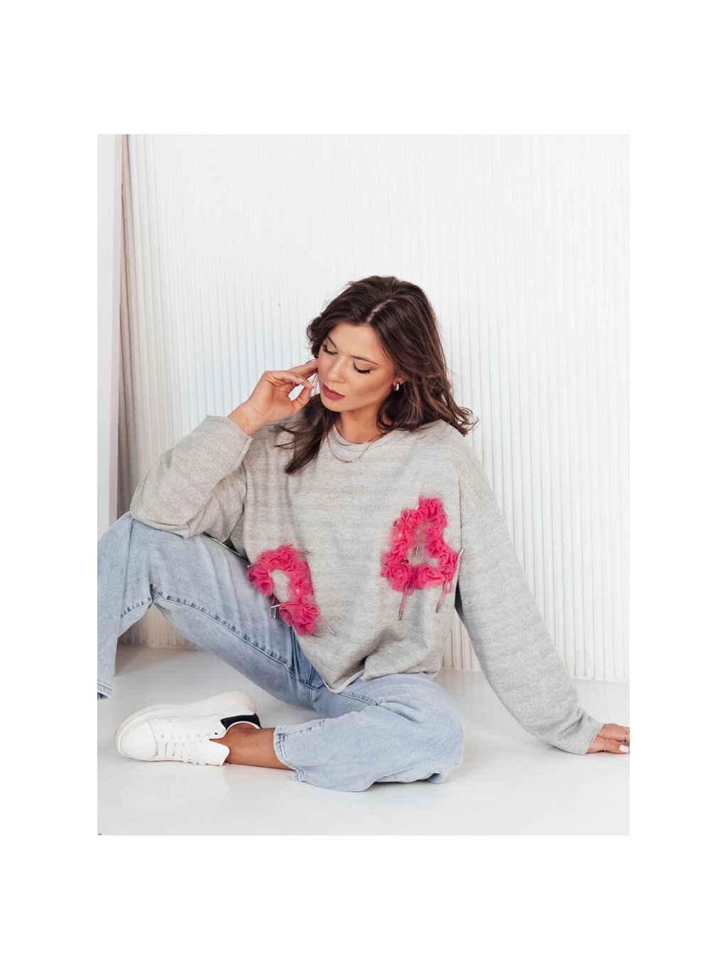 Szürke oversize pulóver hímzett szívekkel RAWEL