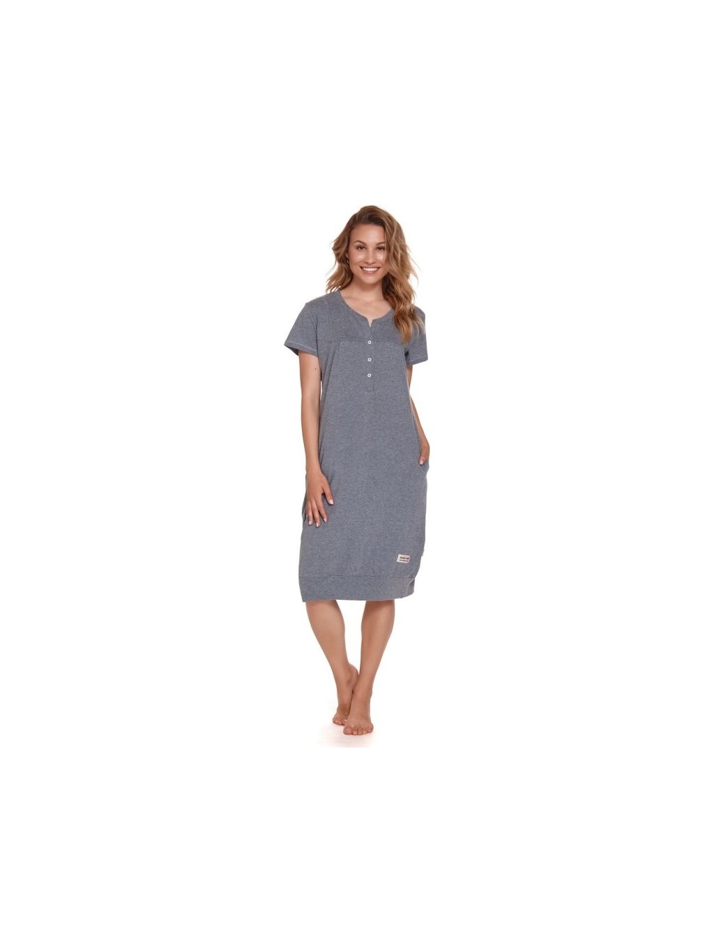• gombos nyakkivágással, laza szabással, rövid ujjakkal és enyhén szűkülő szegéllyel
