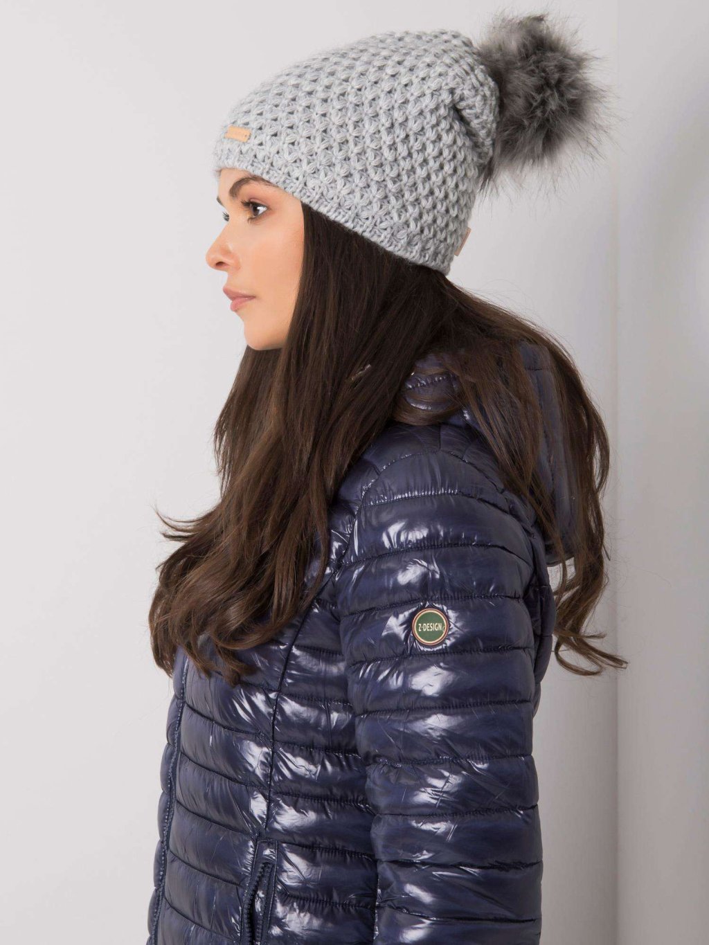 Szürke téli sapka pompommal