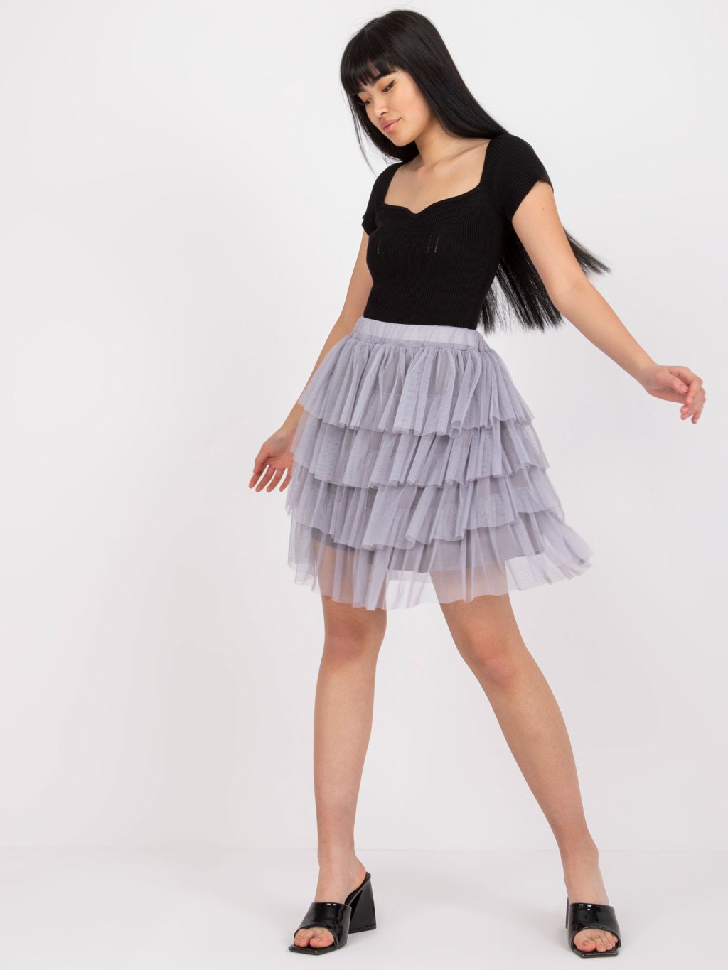 Szürke tüll szoknya fodrokkal