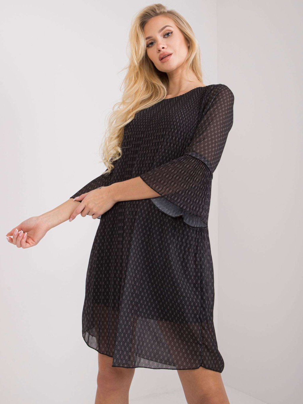 Tavua fekete sifon mintás ruha