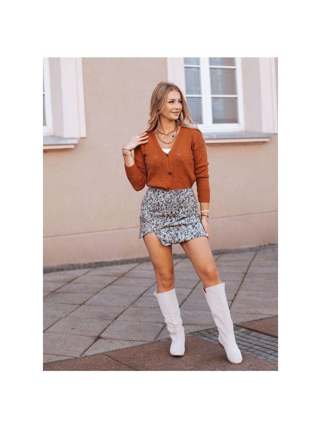 Tégla narancssárga ZOLA mintás gombos pulóver