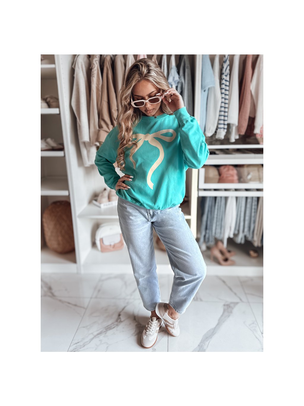 Türkiz női pulóver bájos masni nyomattal SOFTTIE