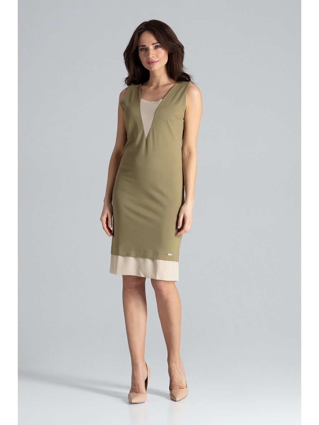 - A nyakkivágásnál és az alsó részen világos elemekkel díszített.