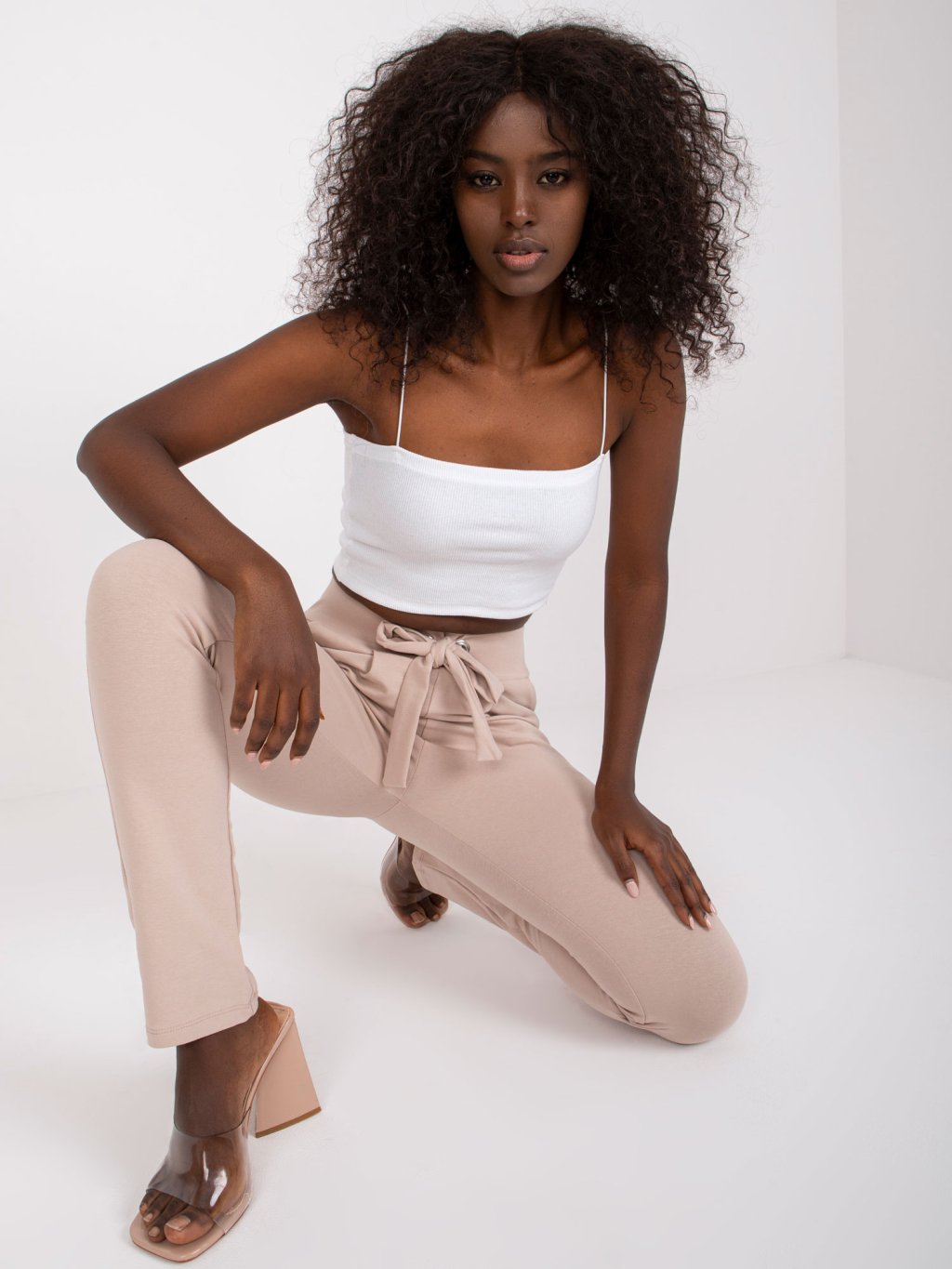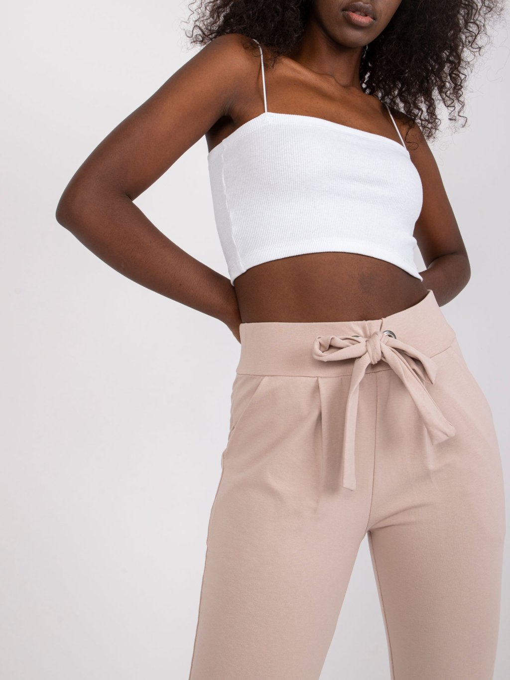 Világos bézs pamut nadrág a derekán masnival Santos