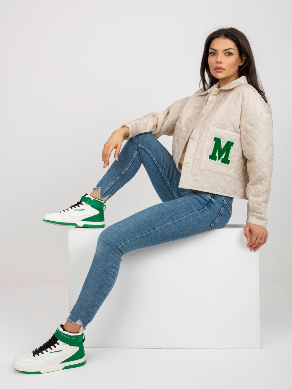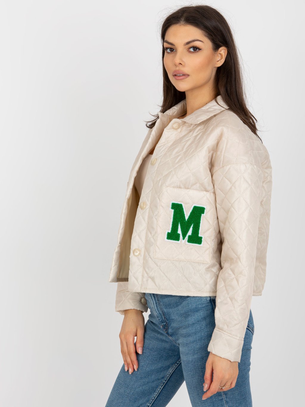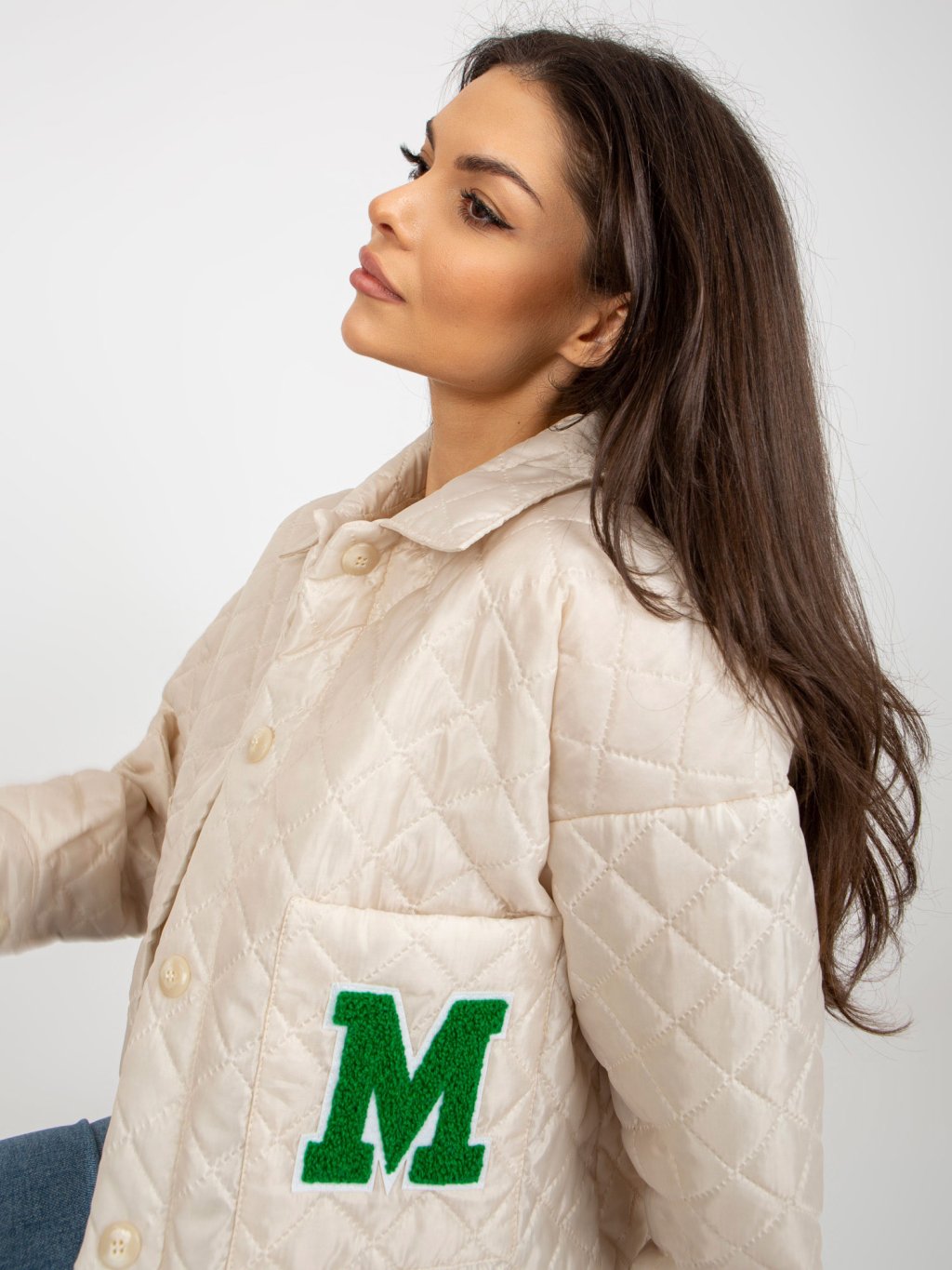 Világos bézs steppelt átmeneti kabát hímzéssel
