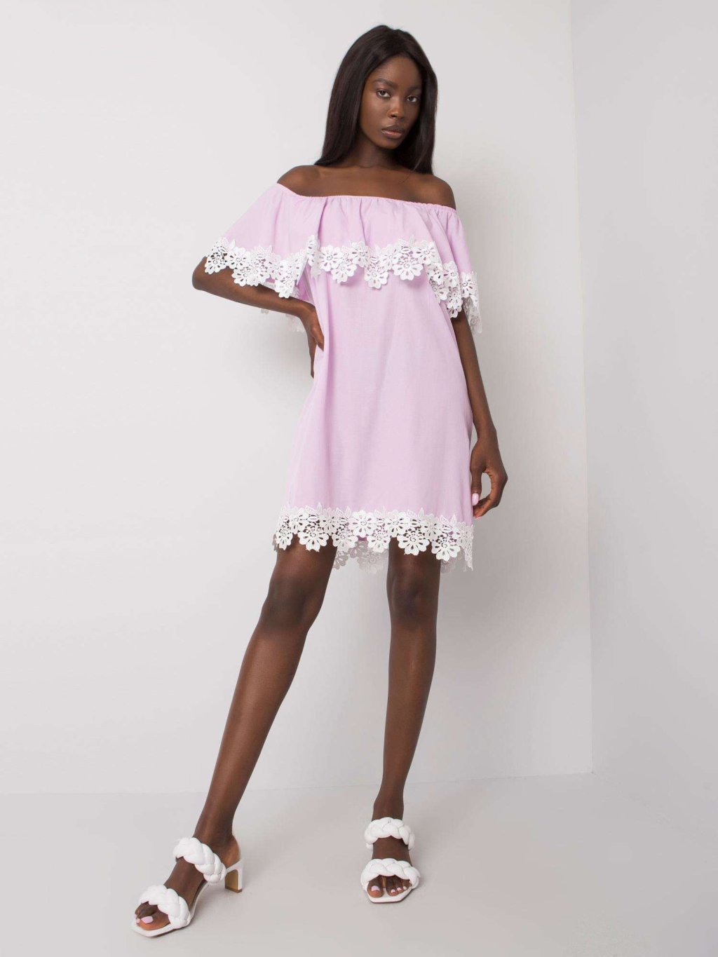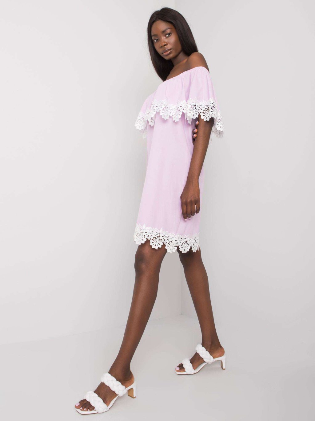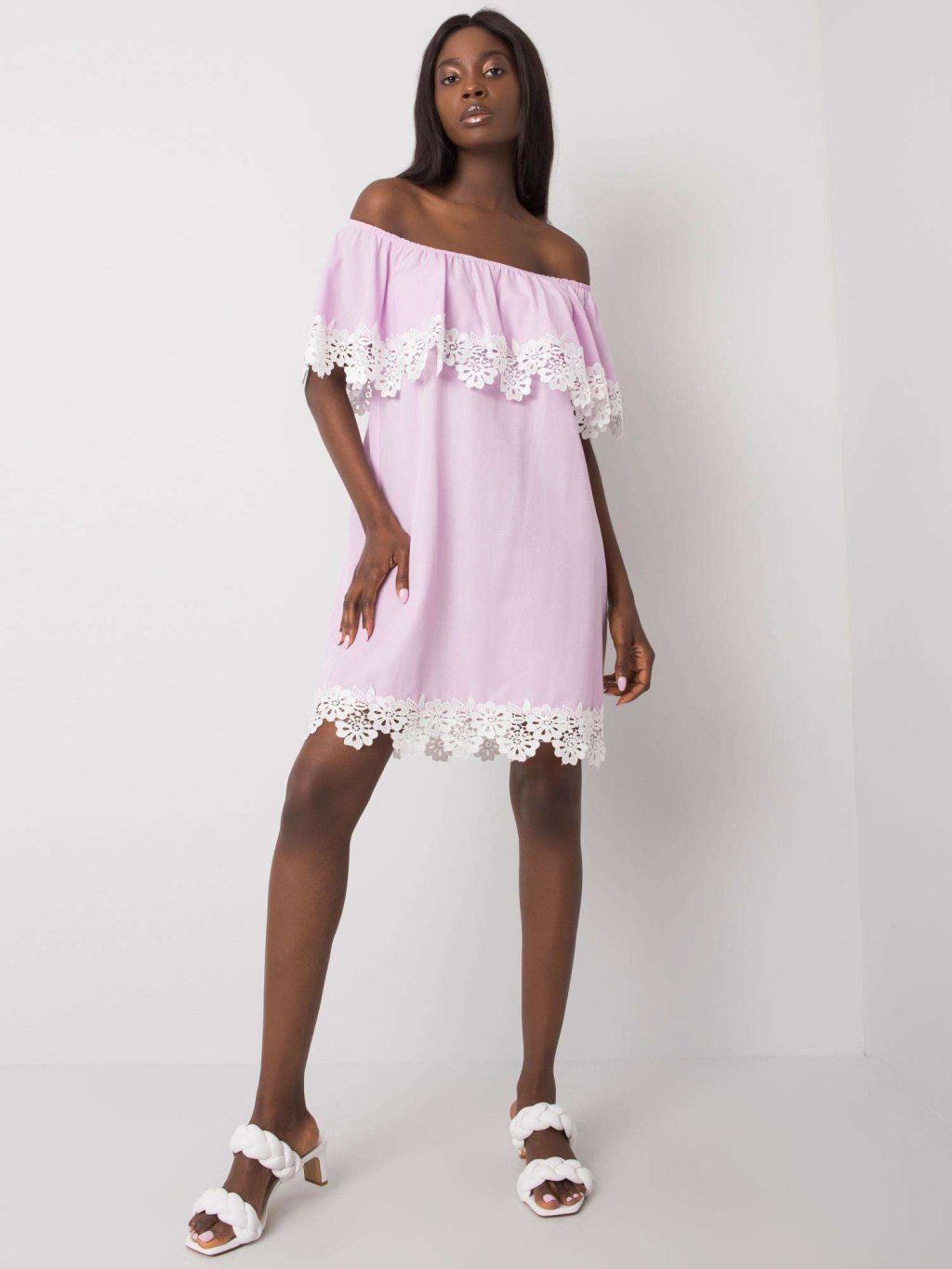 Világos lila ejtett vállú ruha