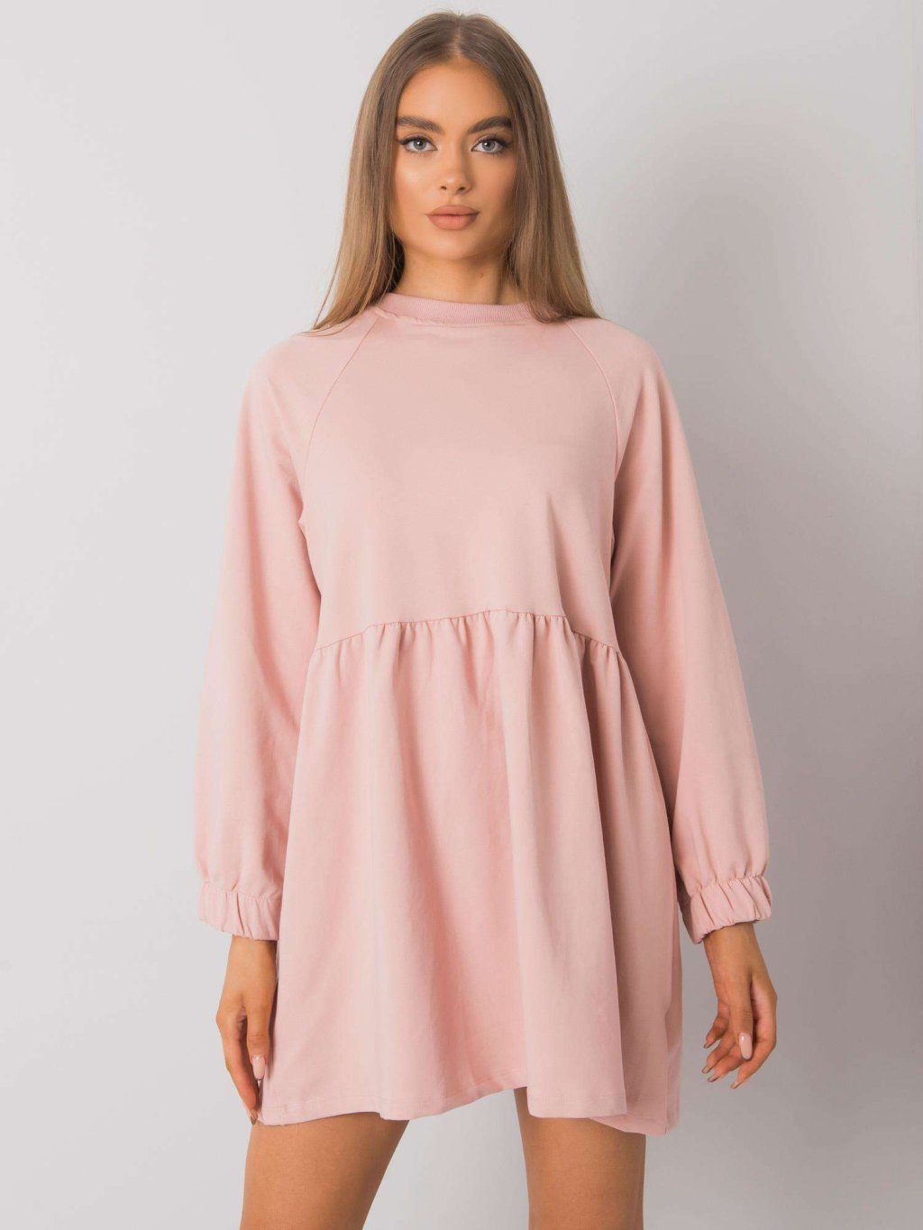 Világos rózsaszín hosszú ujjú mini pulóverruha