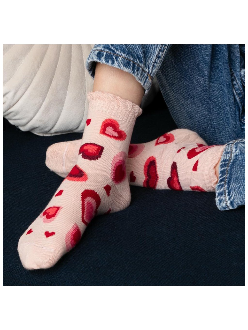 Világos rózsaszín lány szív mintás zokni Art.014