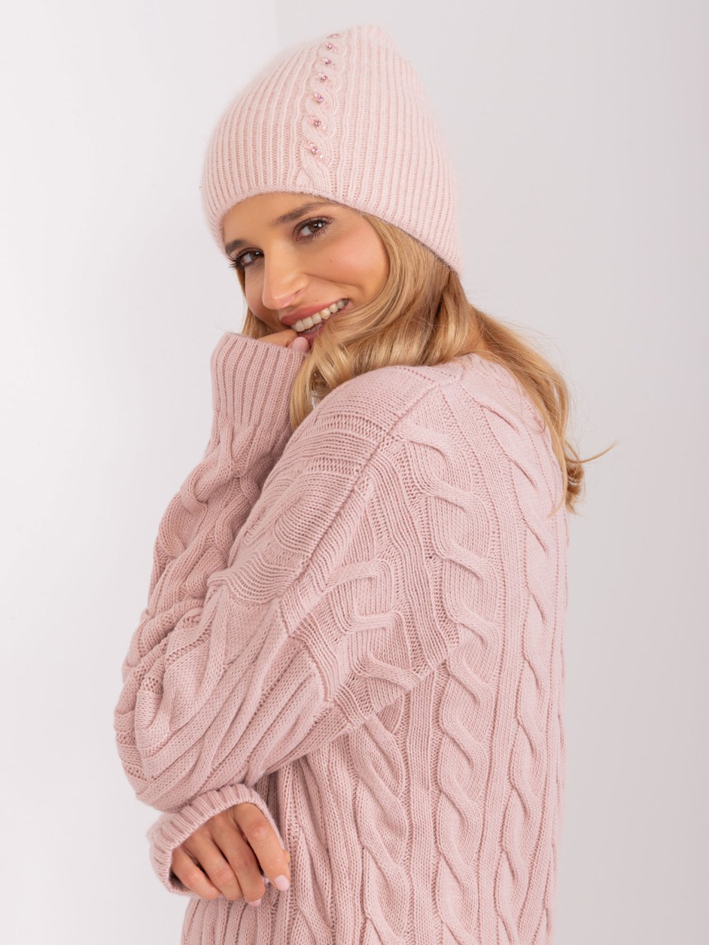 Világos rózsaszín meleg sapka