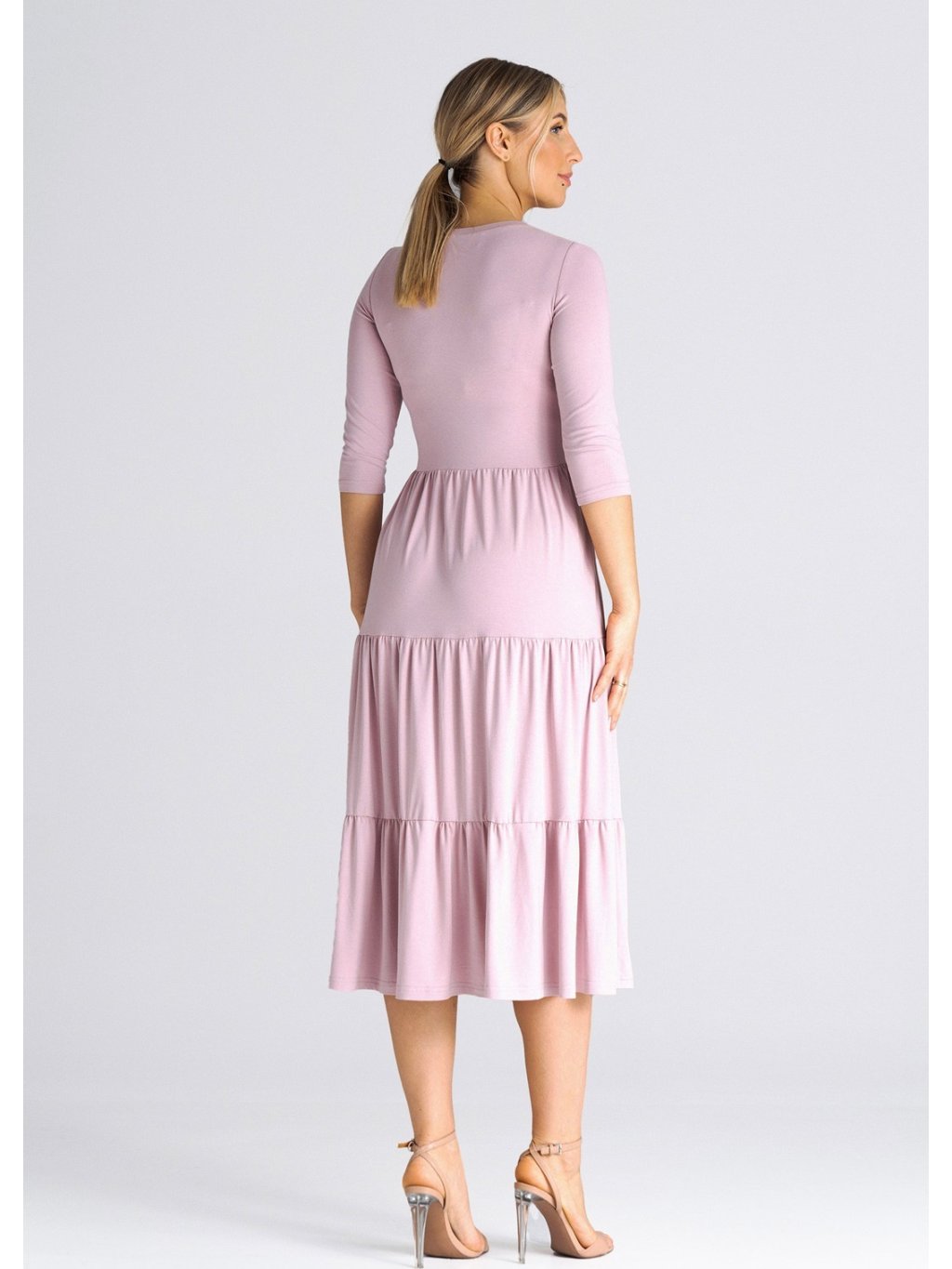 Világos rózsaszín midi ruha fodorral