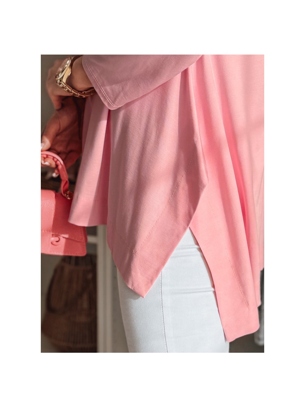 Világos rózsaszín női aszimmetrikus oversize blúz medállal COMFILA