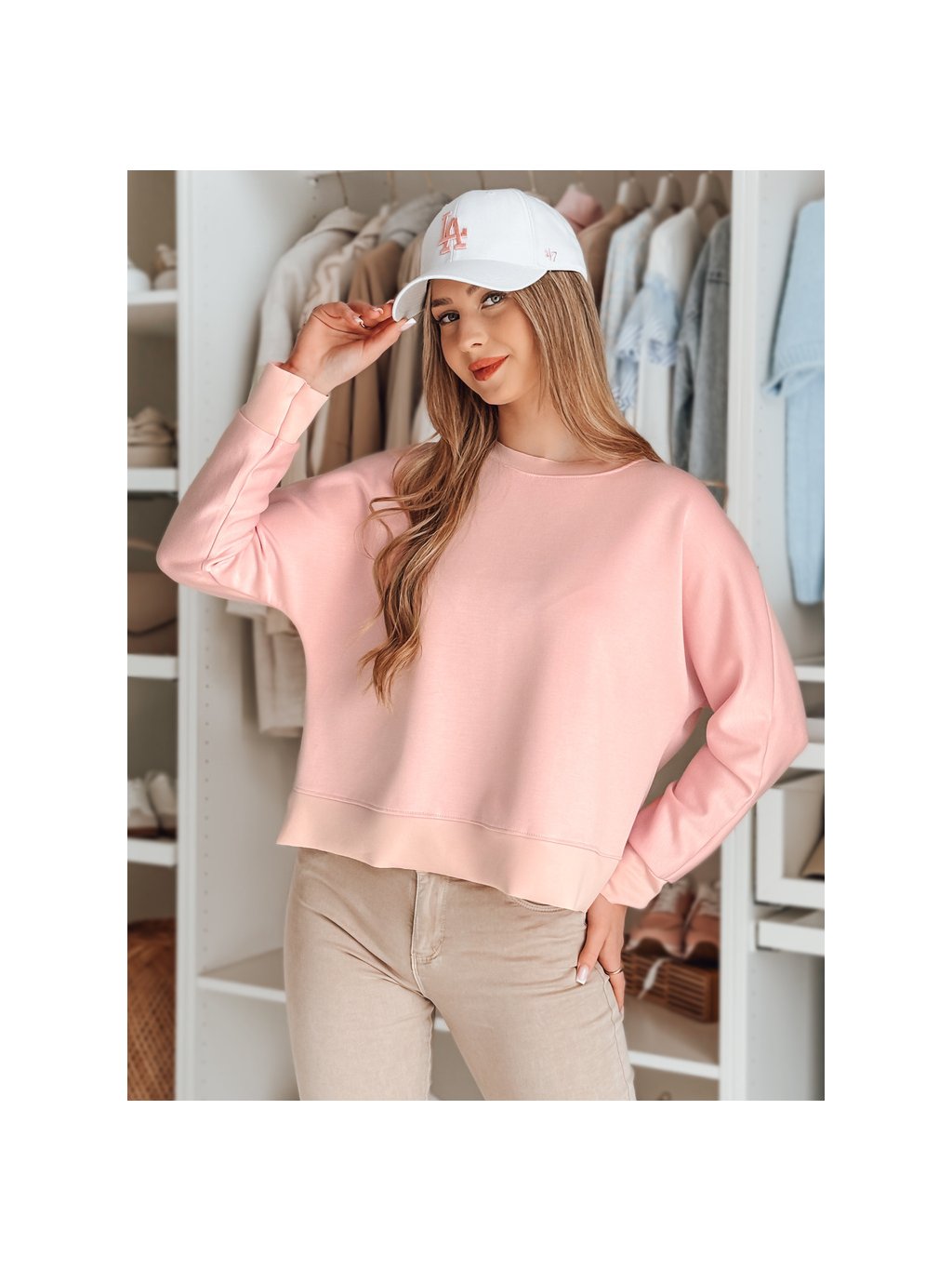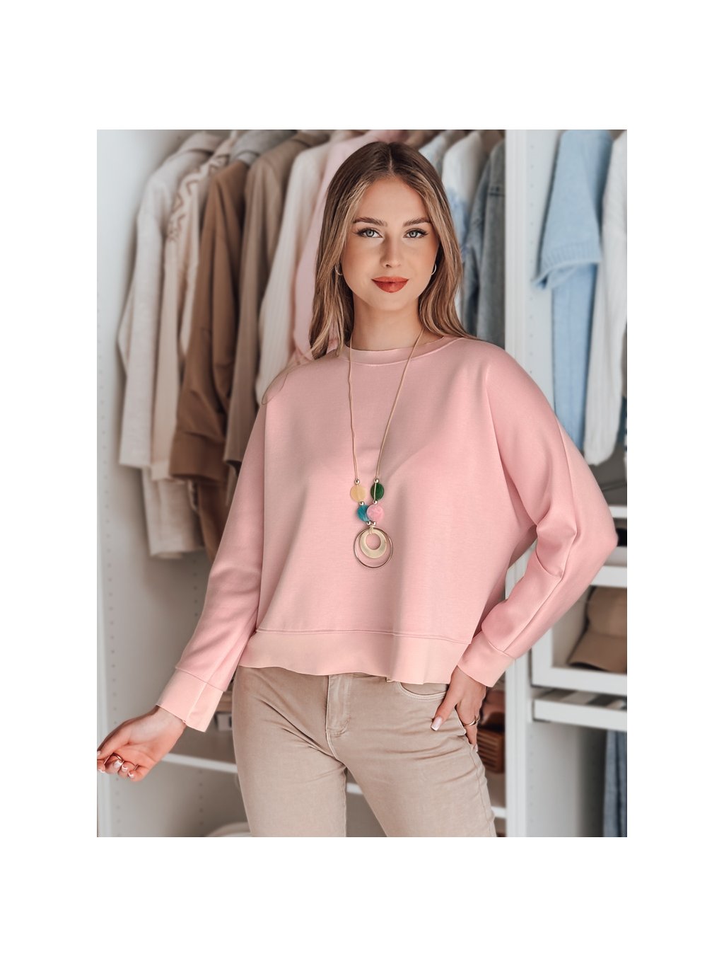 Világos rózsaszín női könnyű rövid pulóver NUBISS medállal