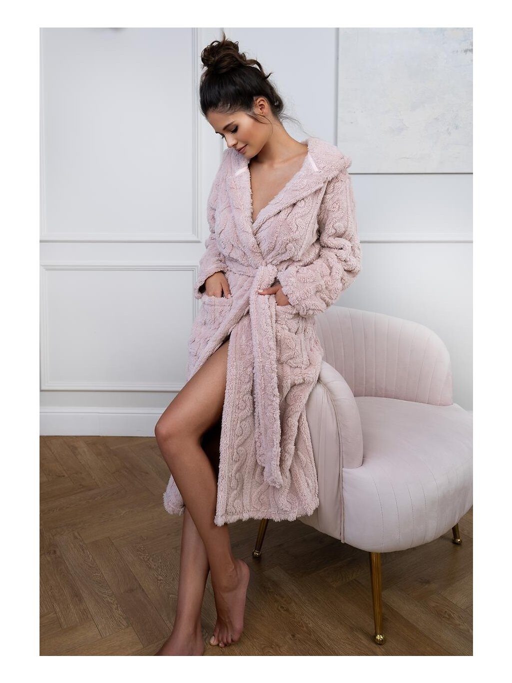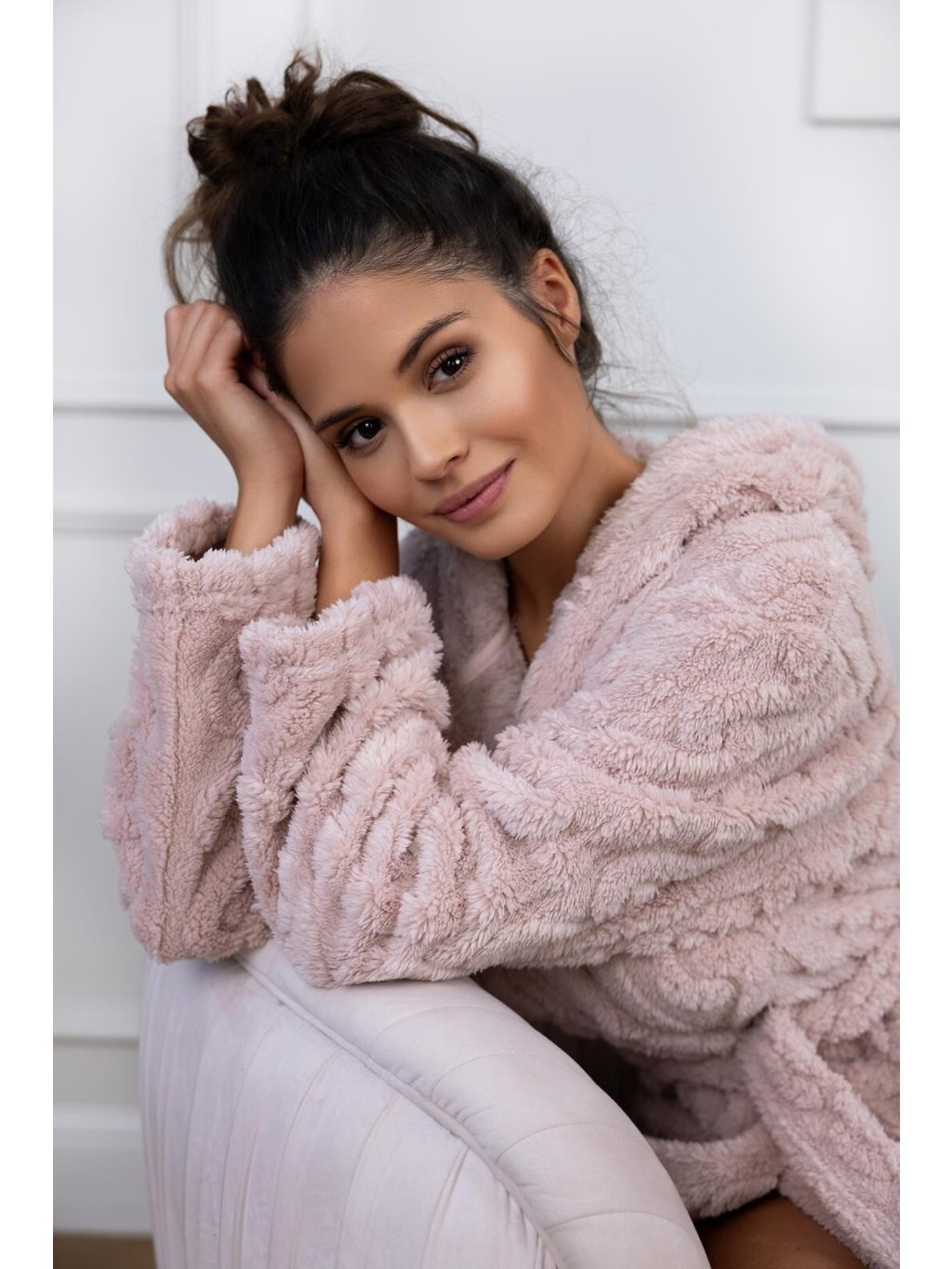 Világos rózsaszín női puha fürdőköpeny kapucnival Sensis Giulia