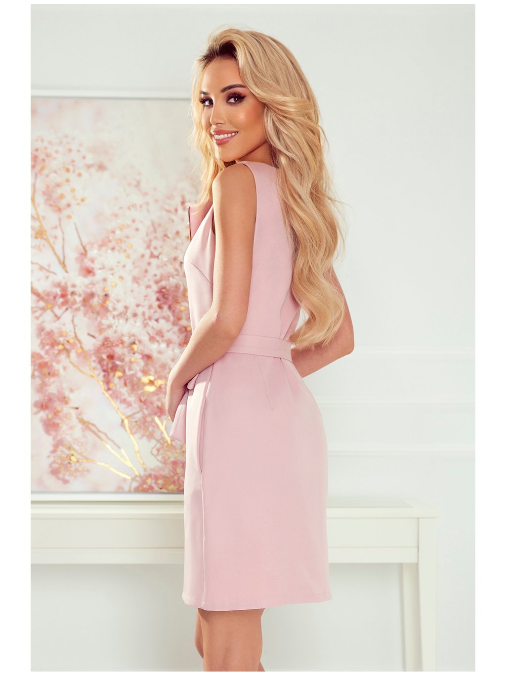 Világos rózsaszín ruha arany cipzárral és övvel ESTER