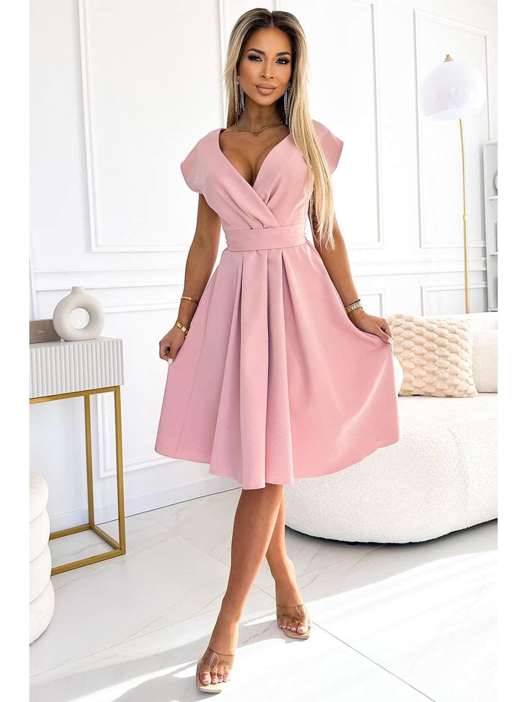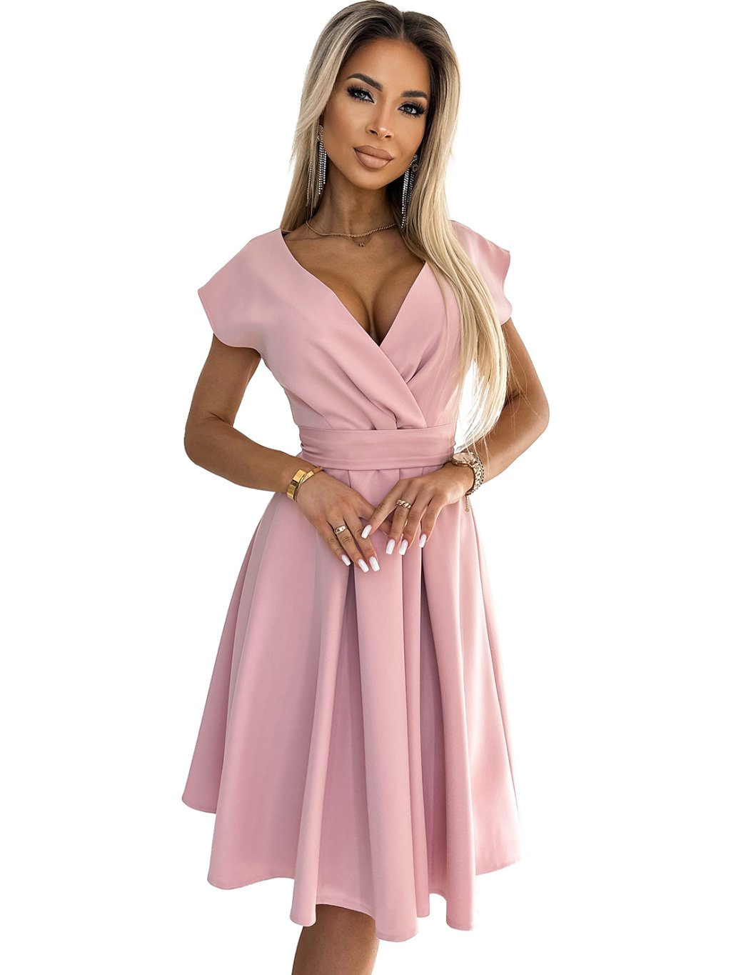 Világos rózsaszín ruha boríték nyakkivágással SCARLETT