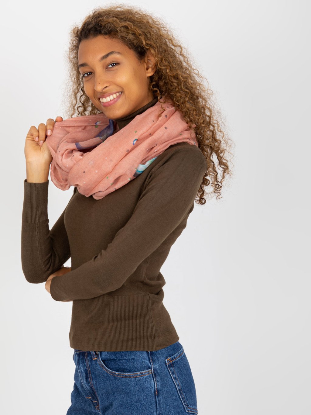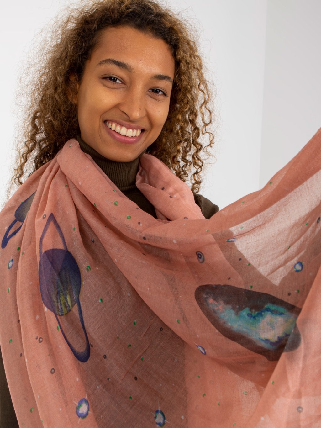 Világos rózsaszín sál kozmikus minta