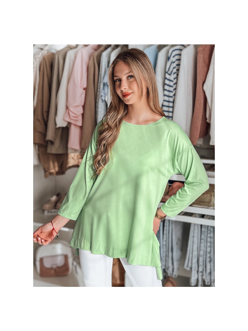 Világos zöld női aszimmetrikus oversize blúz medállal COMFILA