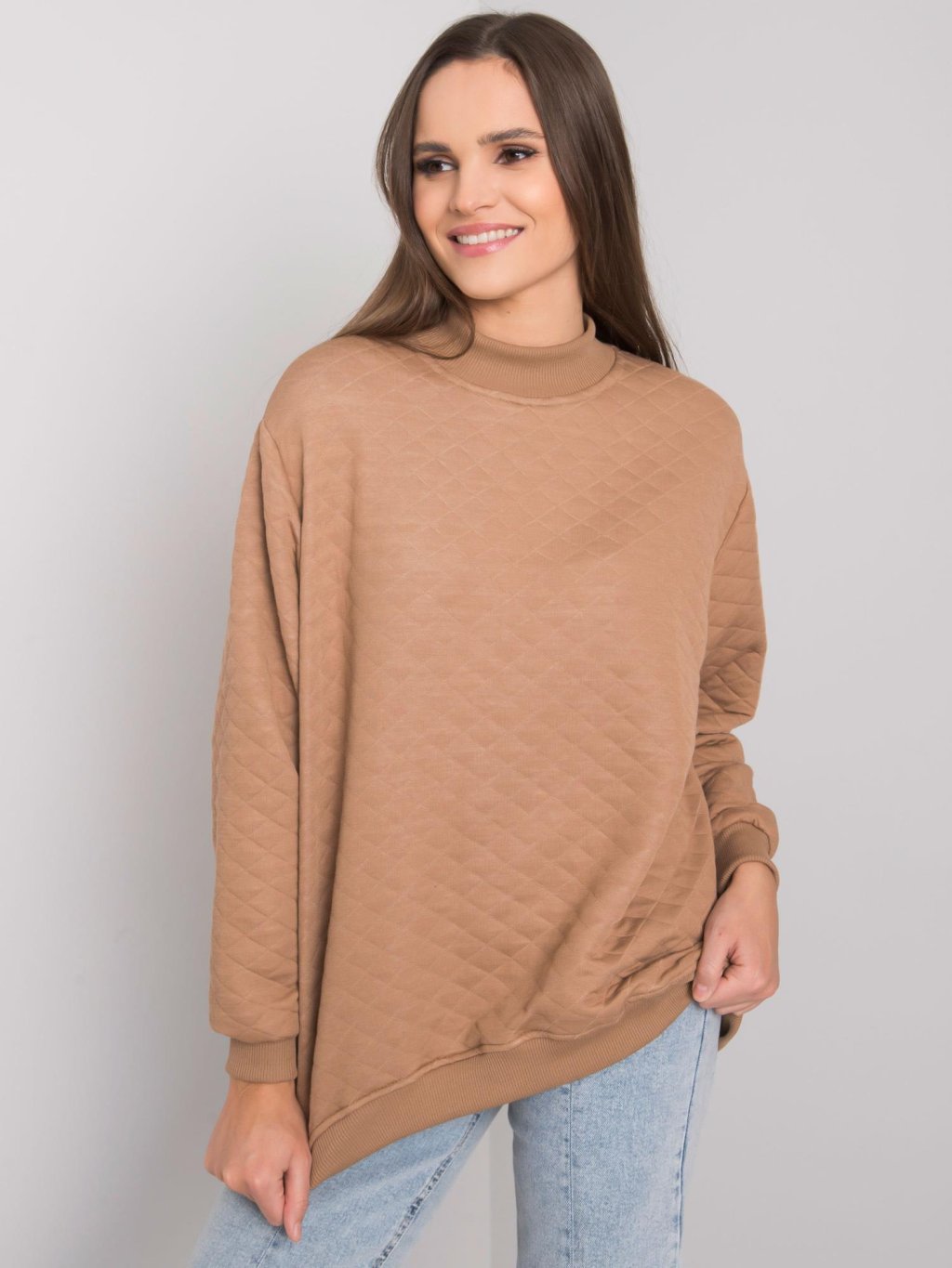 Világosbarna női steppelt kapucnis pulóver
