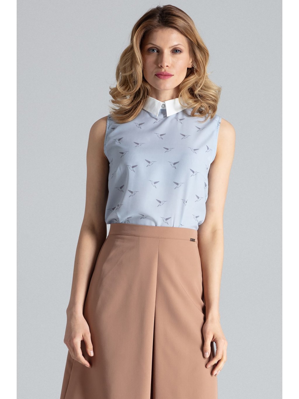 Világoskék blúz gallérral