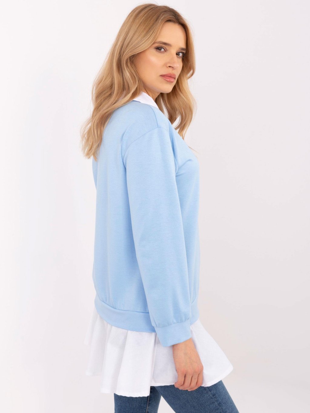 Világoskék blúz ing elemekkel