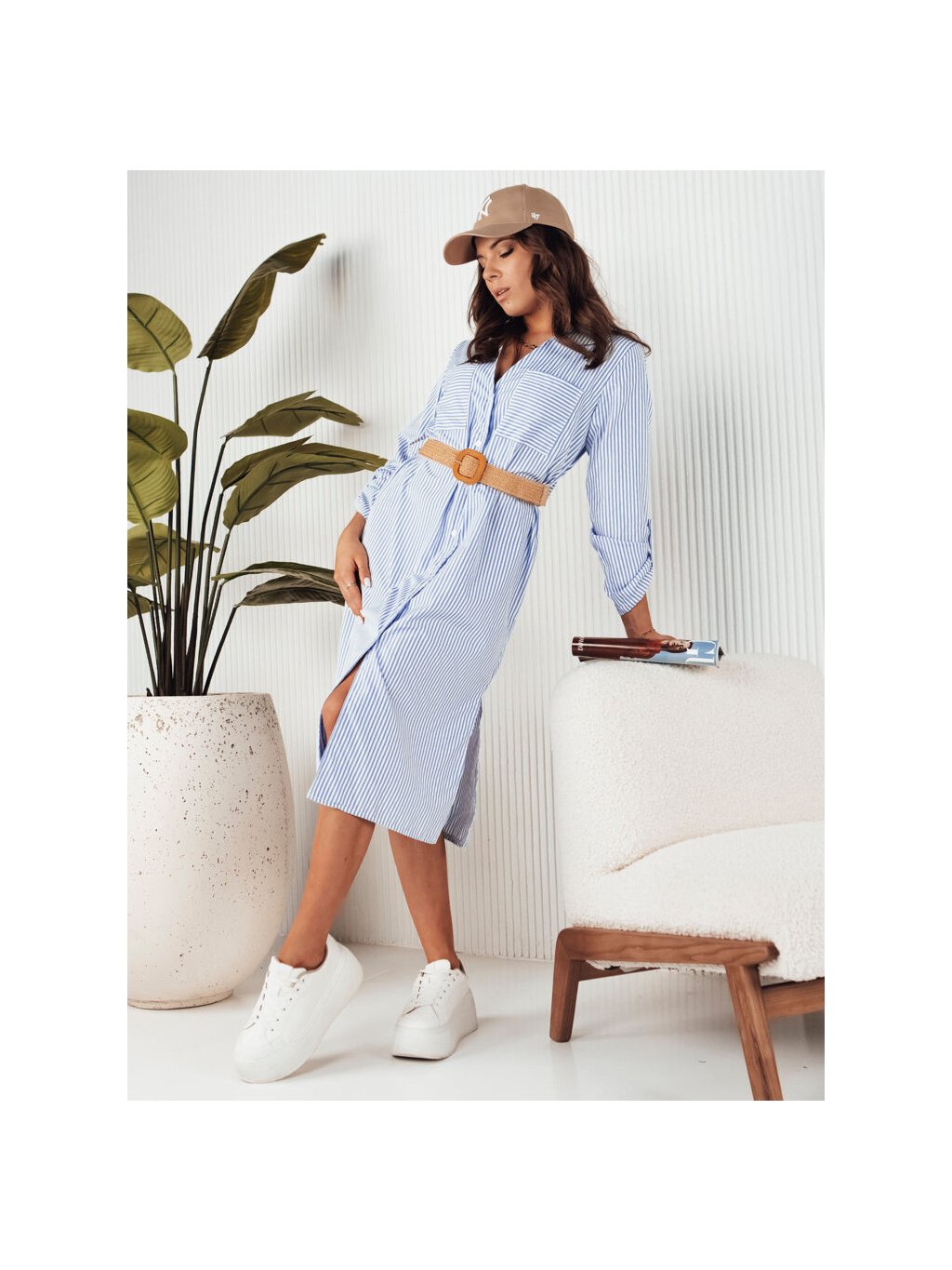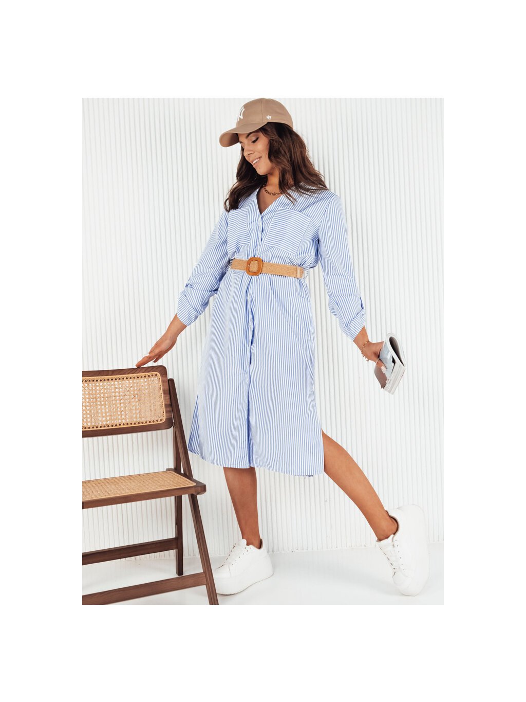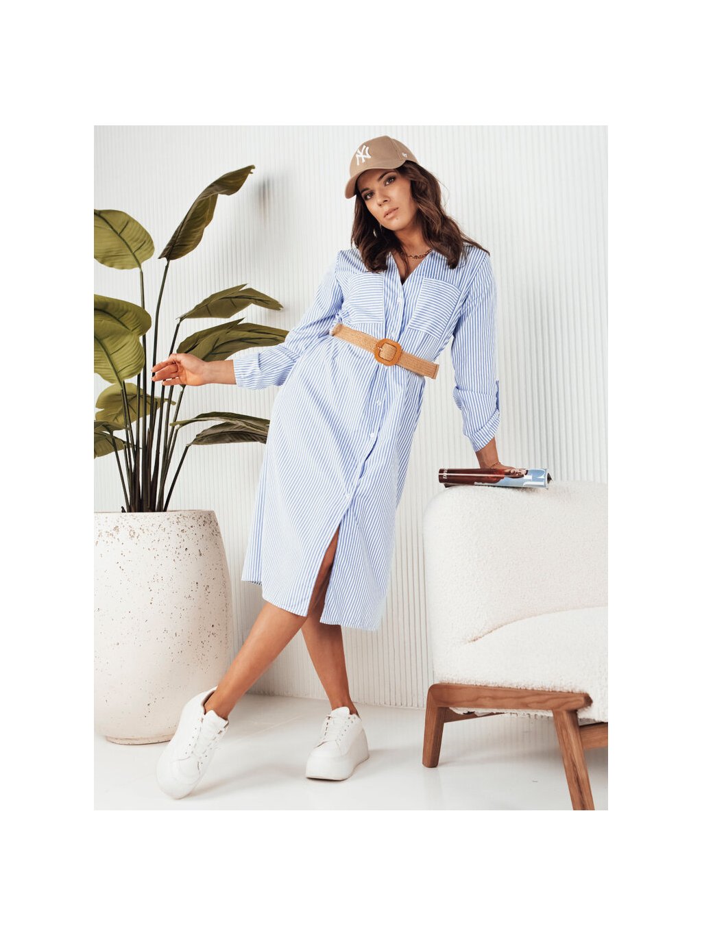 Világoskék csíkos ing ruha hasítékkal ELAINA