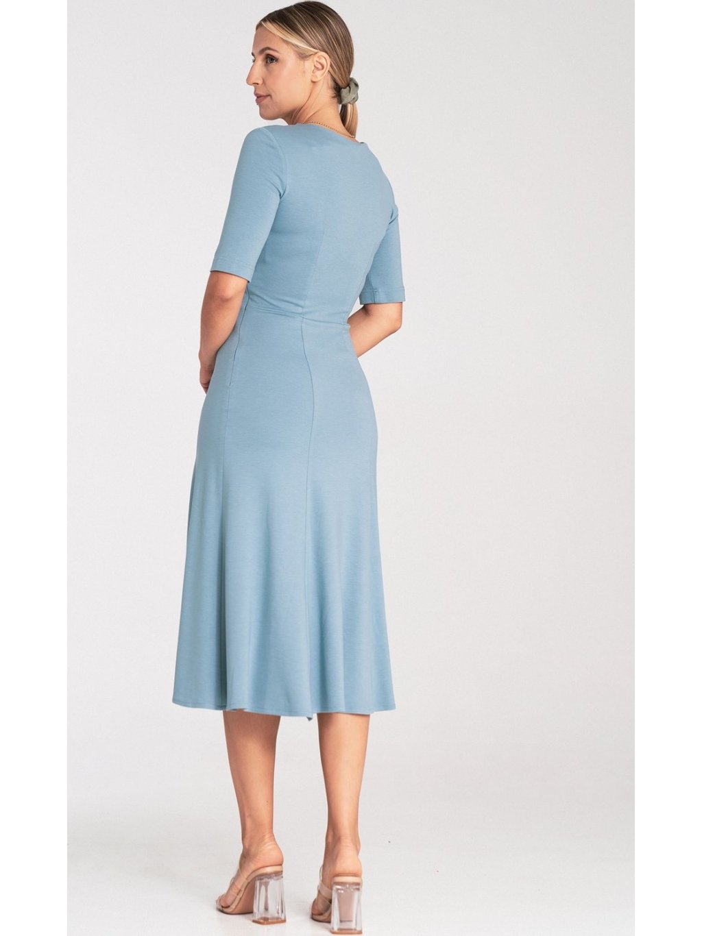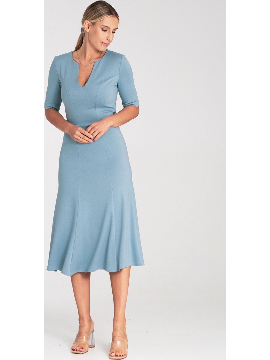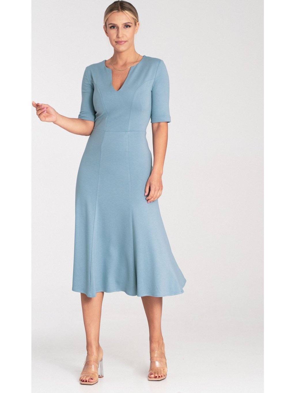 Világoskék midi koktél ruha