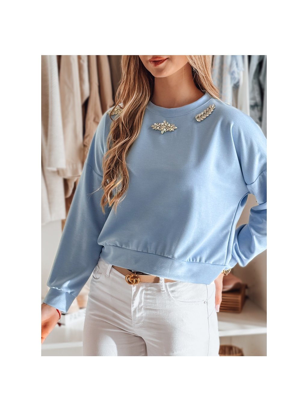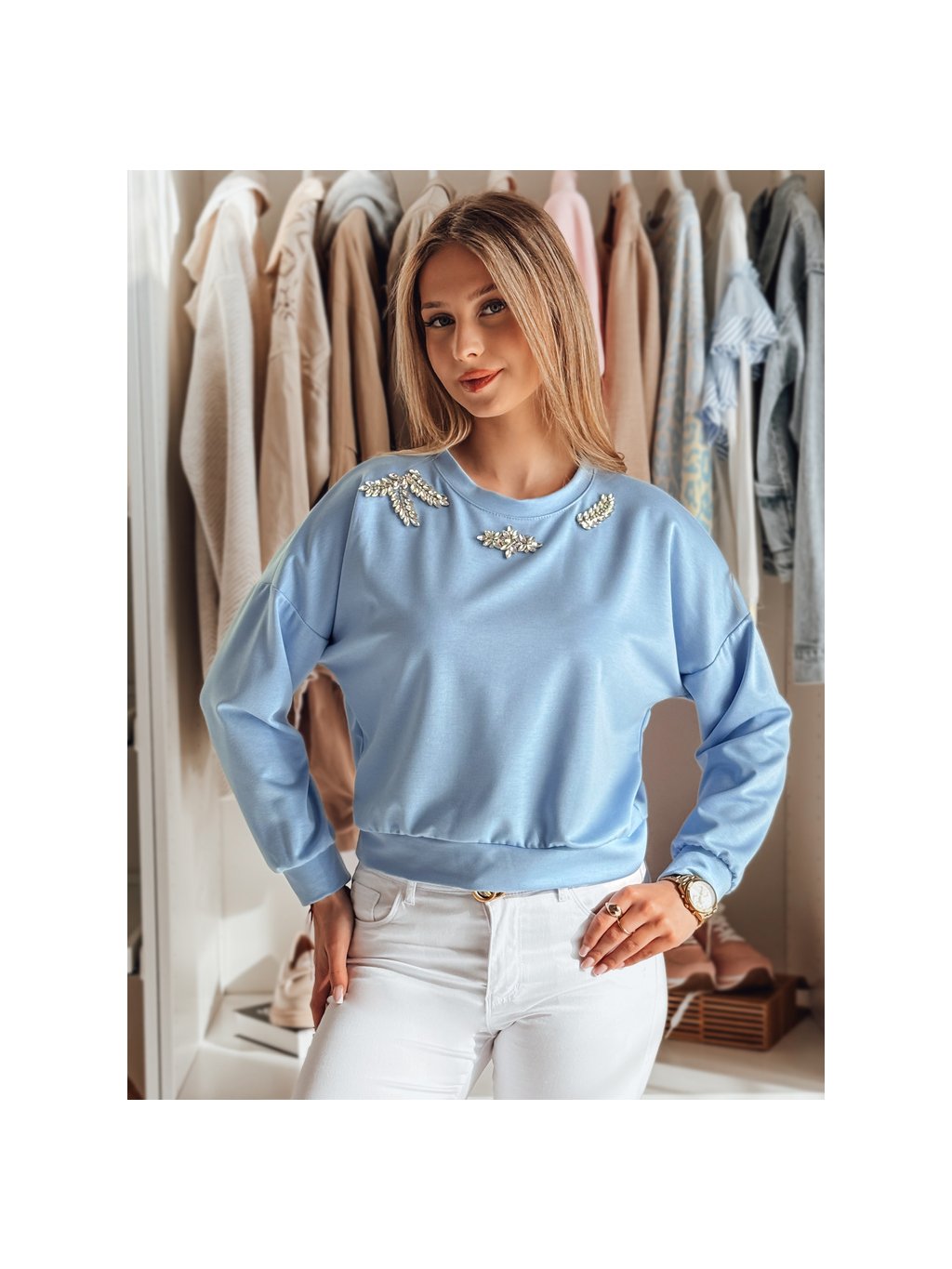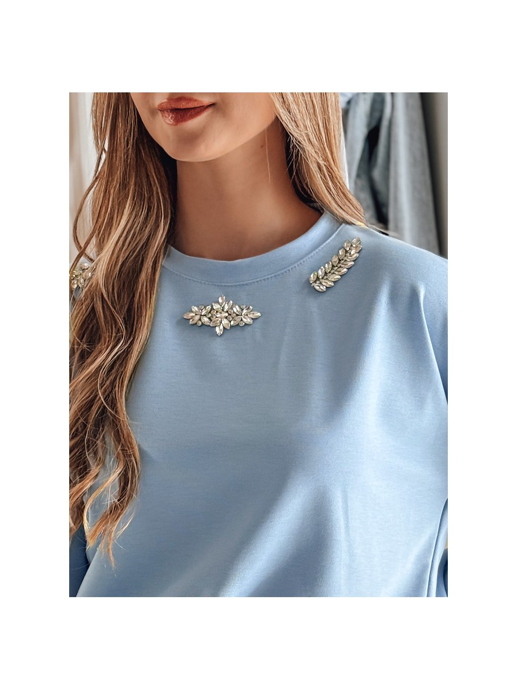 Világoskék női könnyű pulóver dekoratív díszítéssel CRYSTALIA