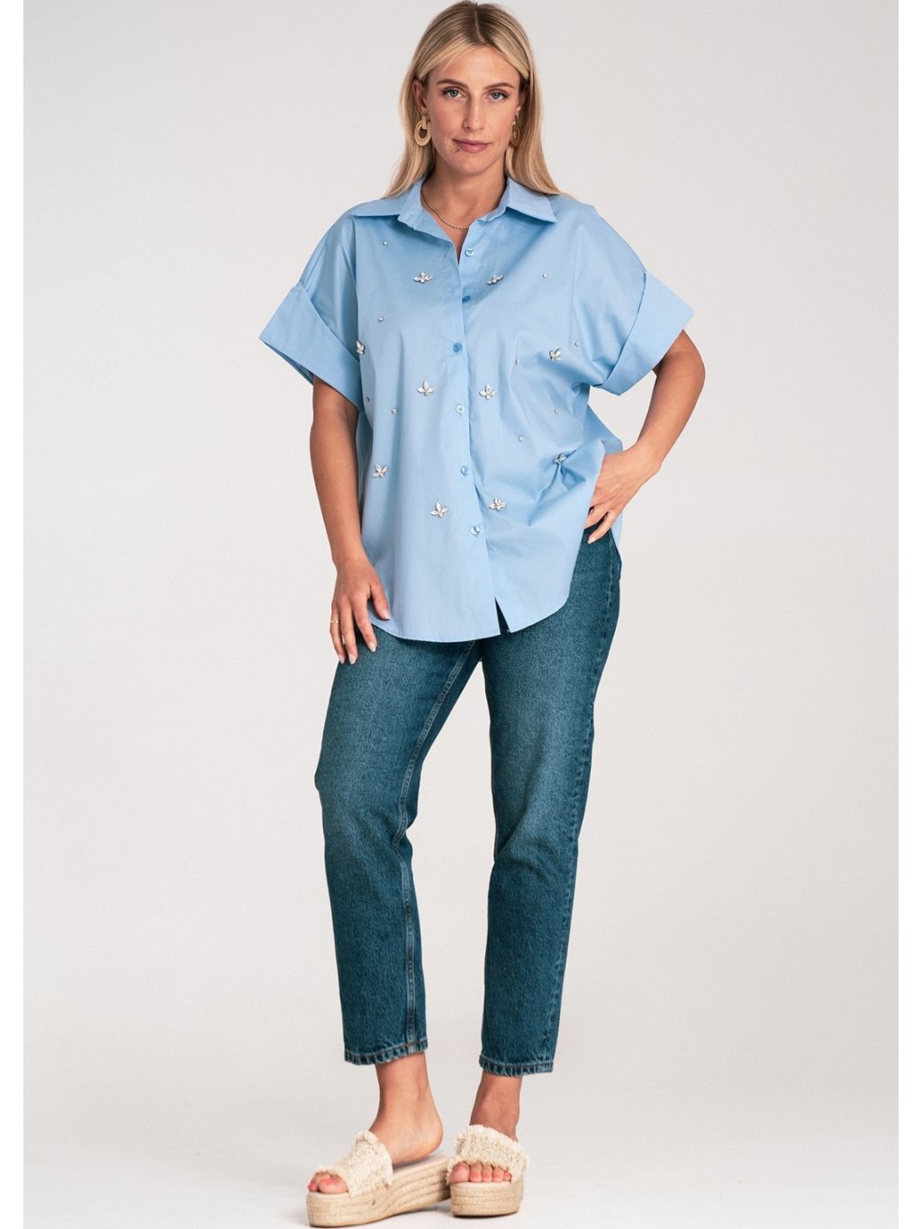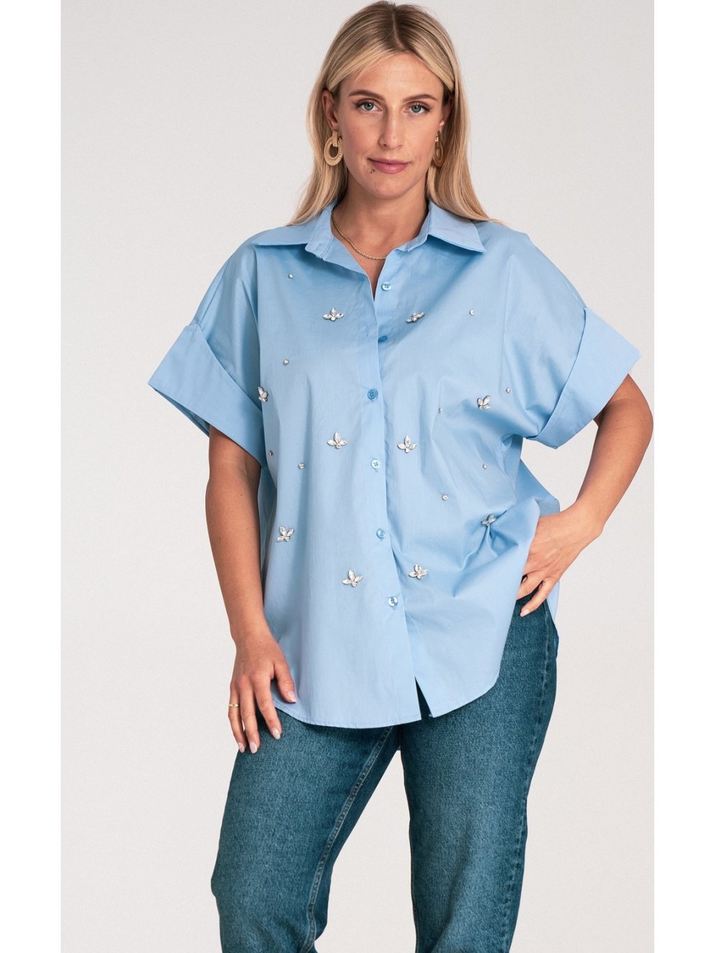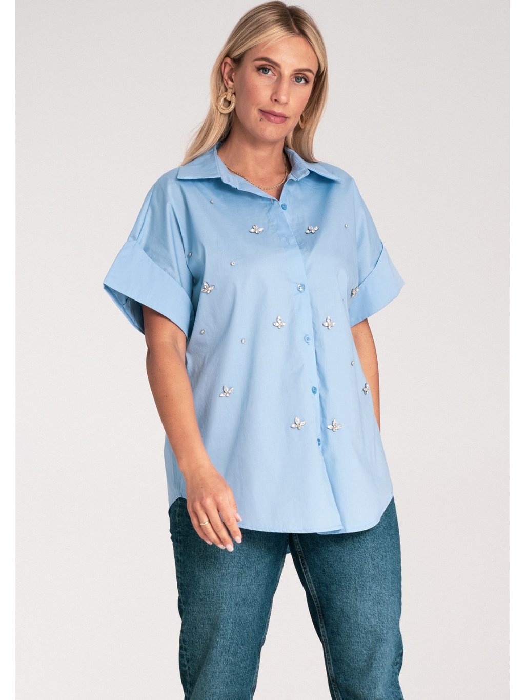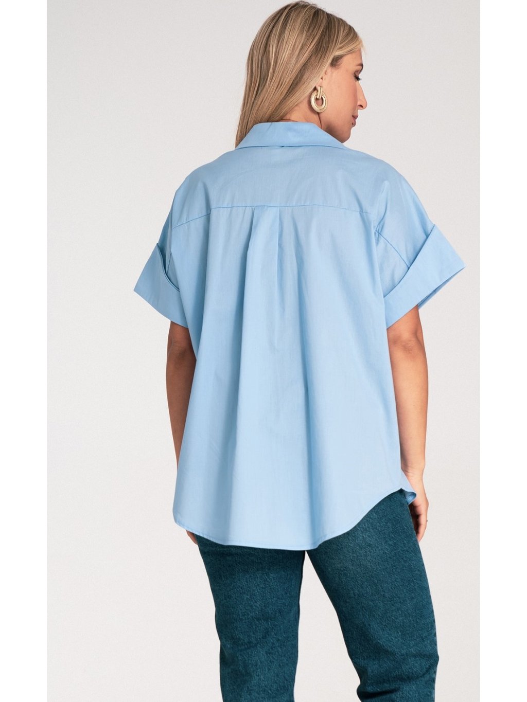 Világoskék női oversize oversize rövid ujjú ing