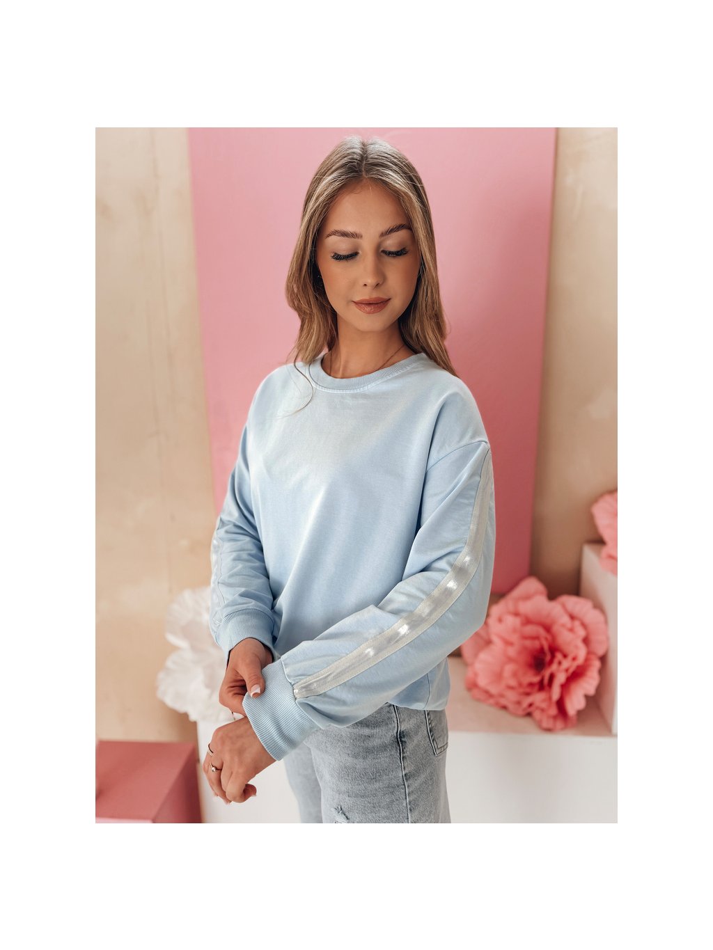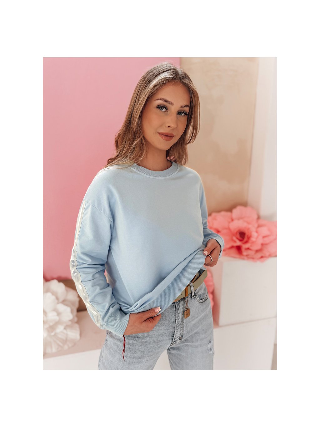 Világoskék női pulóver finom részletekkel LUMIVIA