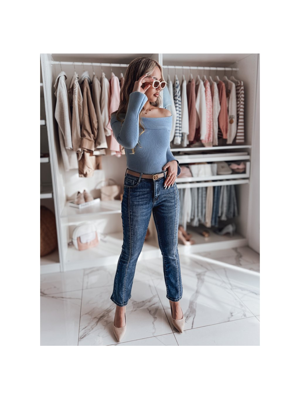 Világoskék női pulóver nyitott vállakkal SHOWIT