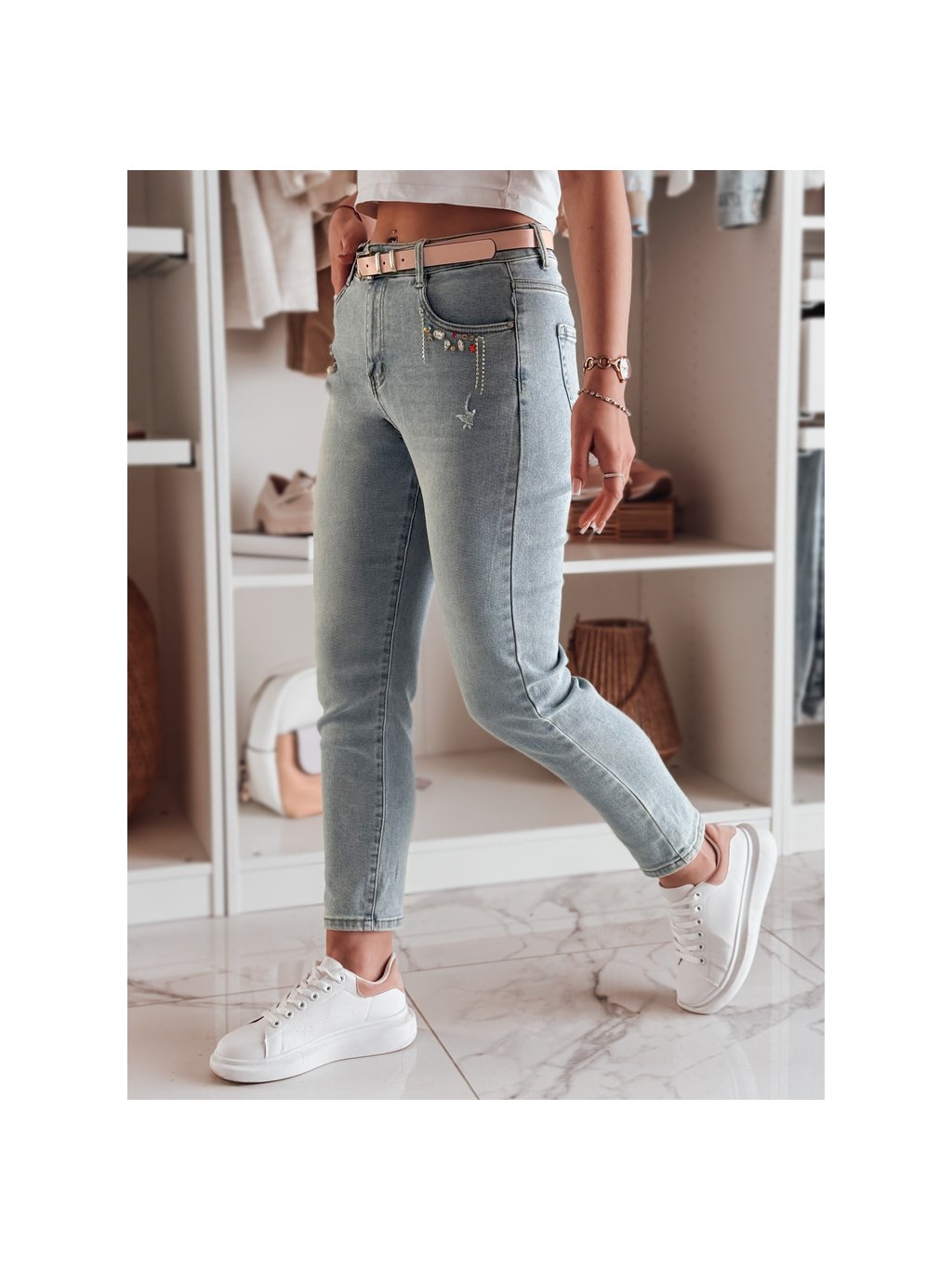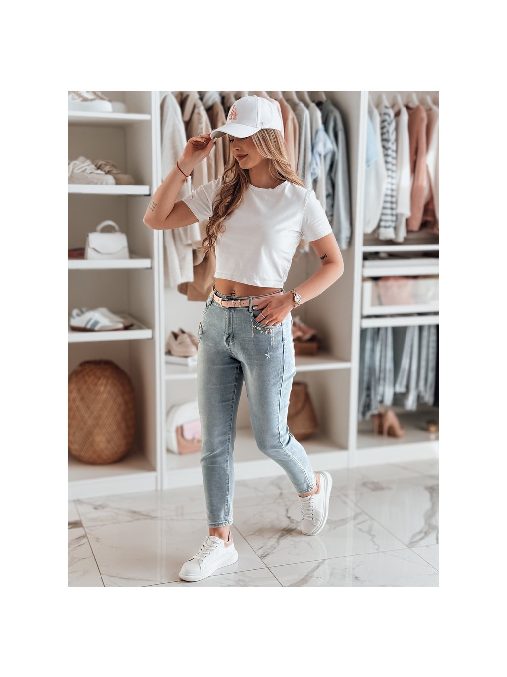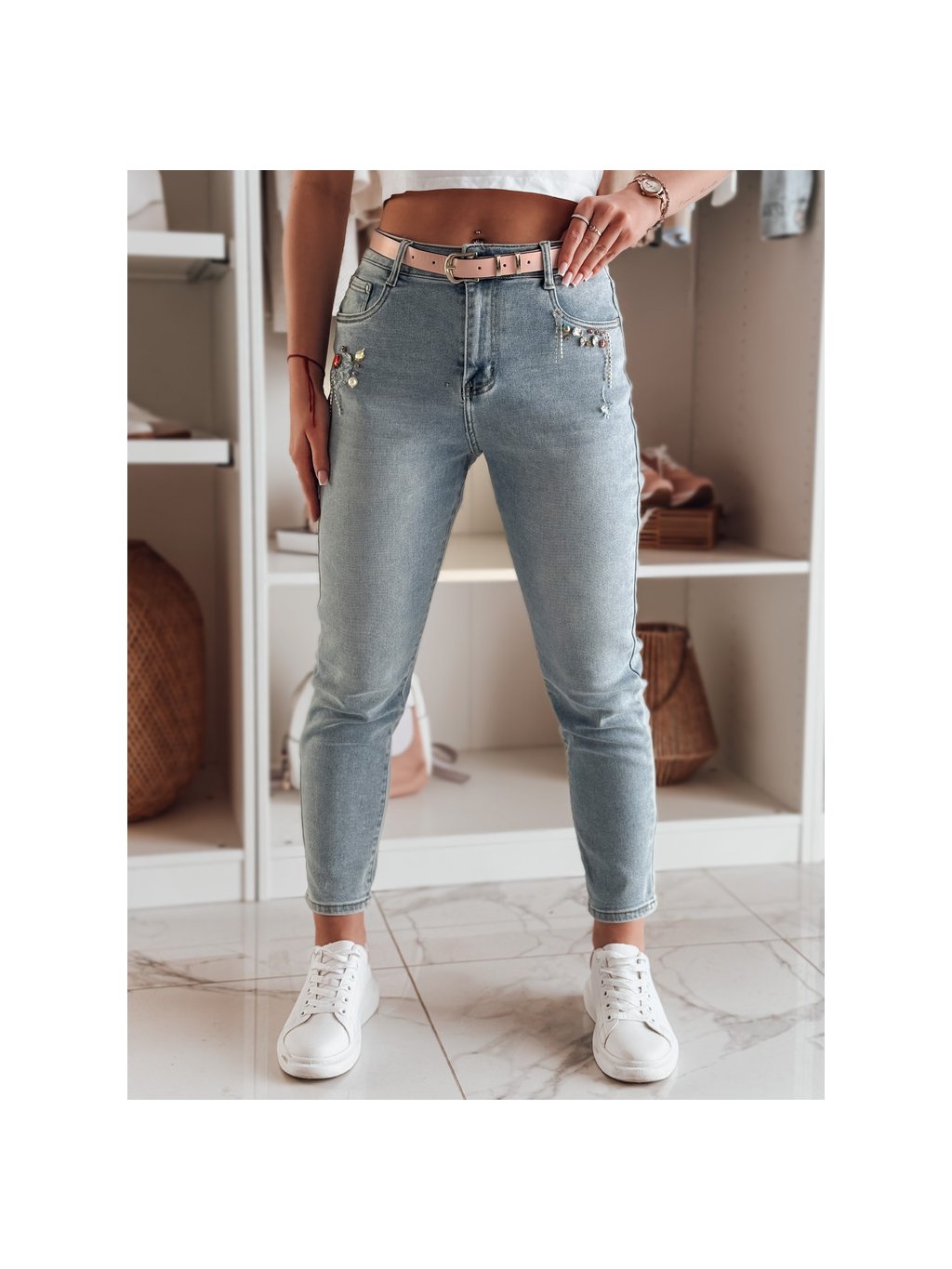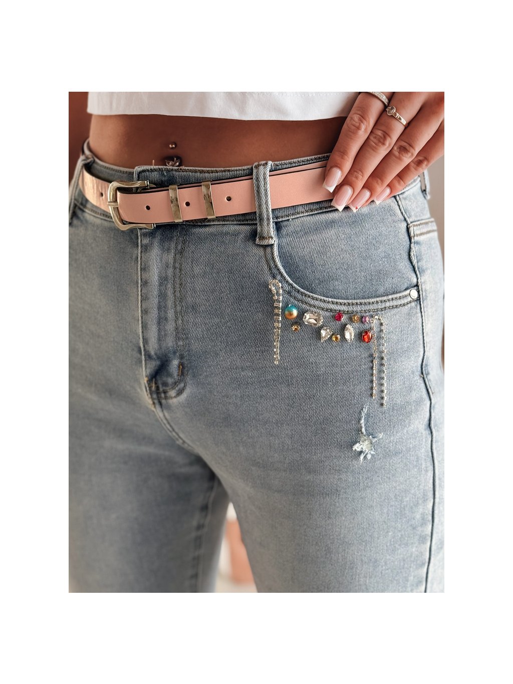 Világoskék női szűk farmernadrág díszítéssel a zsebein BLINGBLING