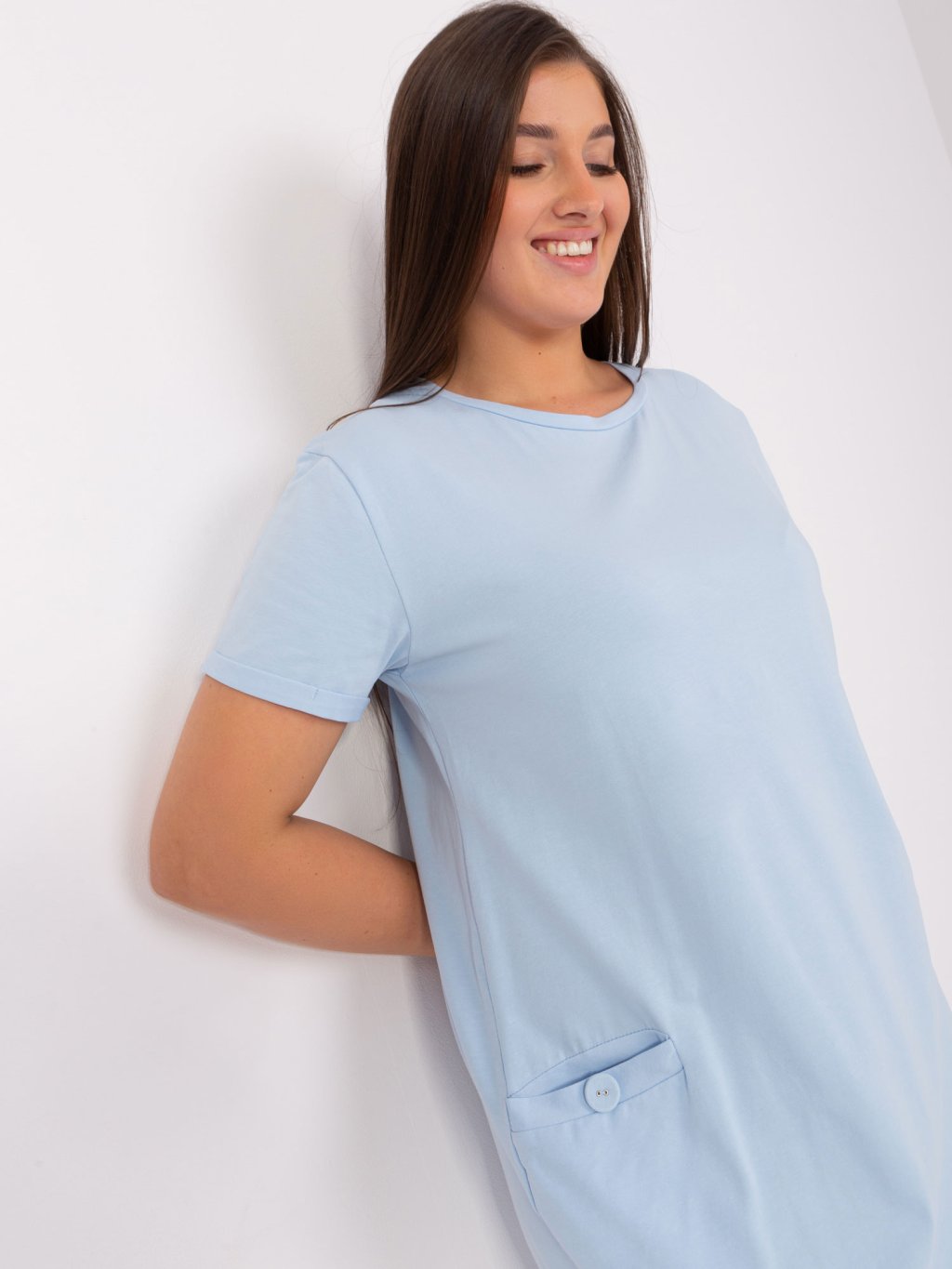 Világoskék ruha zsebekkel