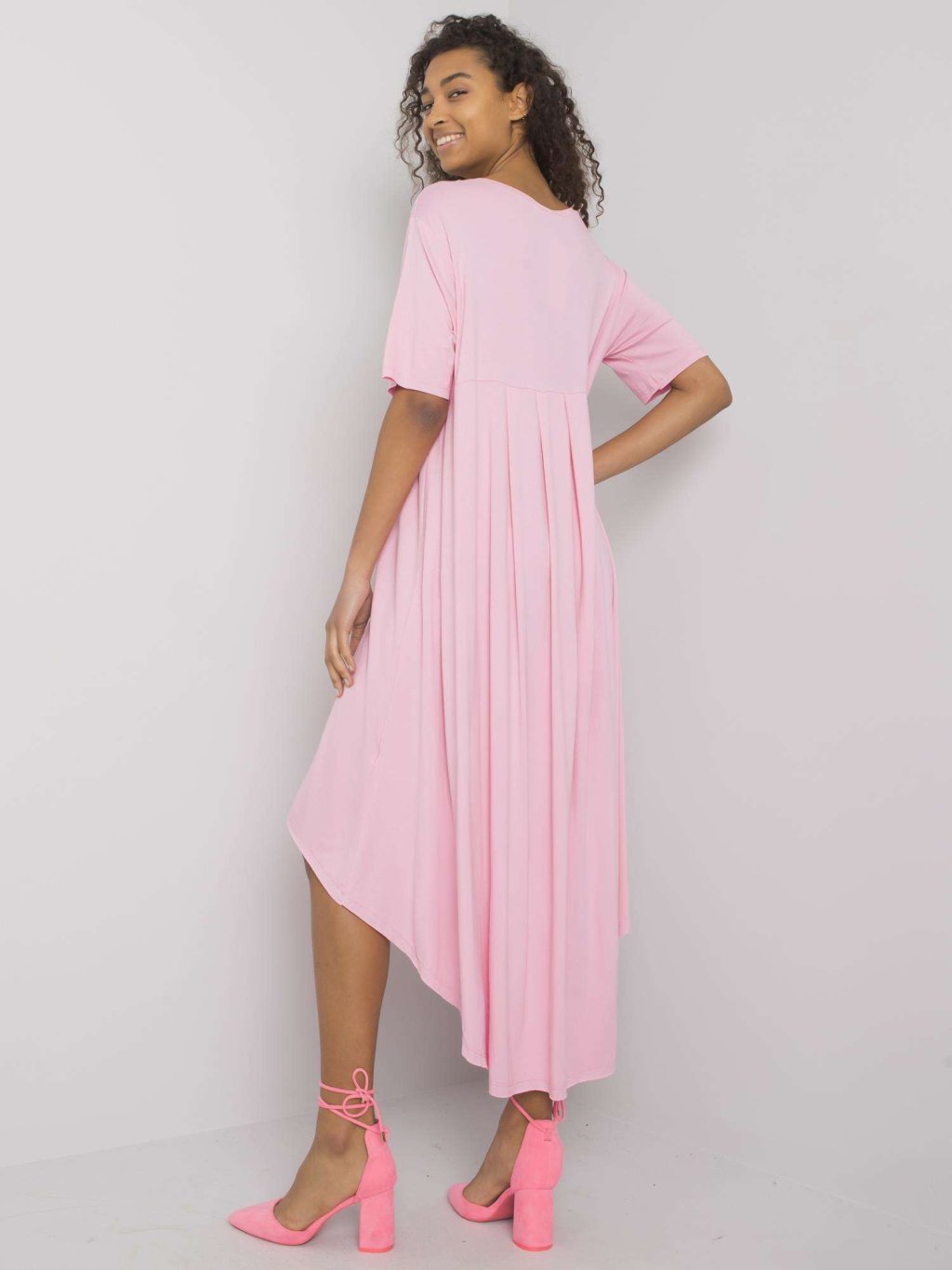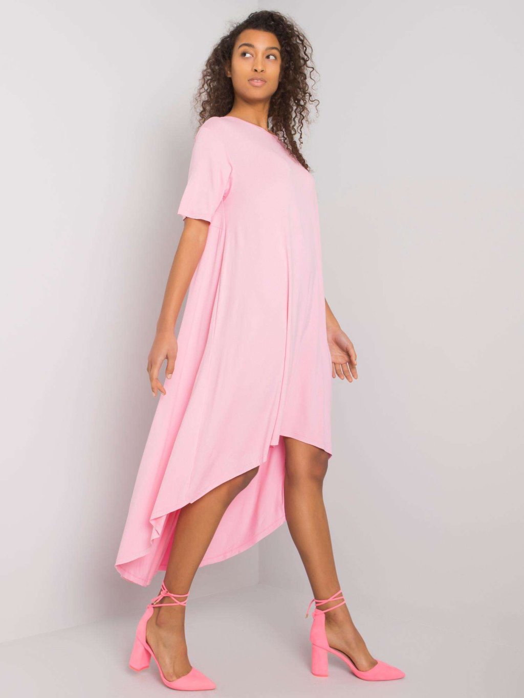 Világosrózsaszín aszimmetrikus női maxiruha