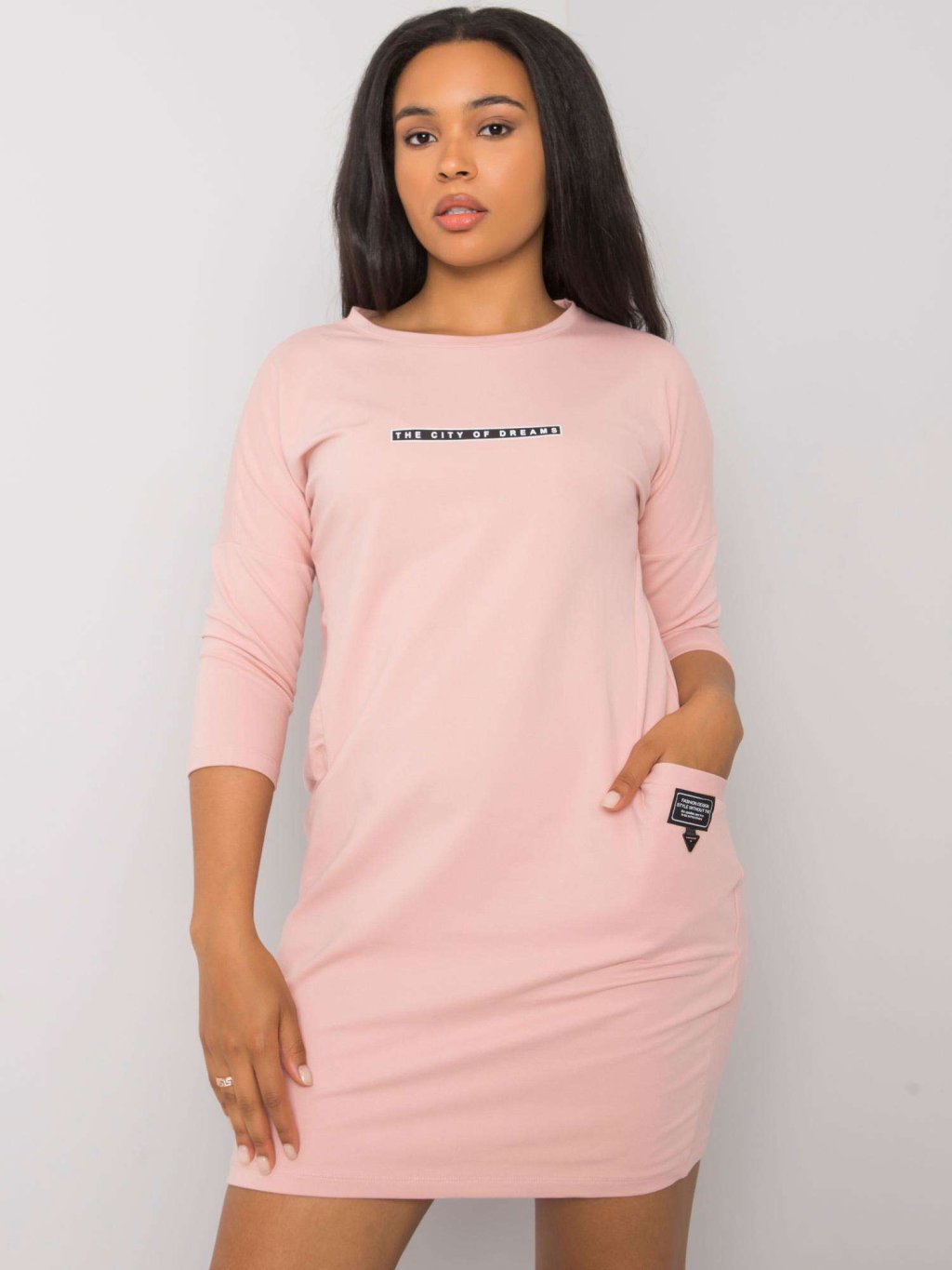 Világosrózsaszín ruha zsebekkel