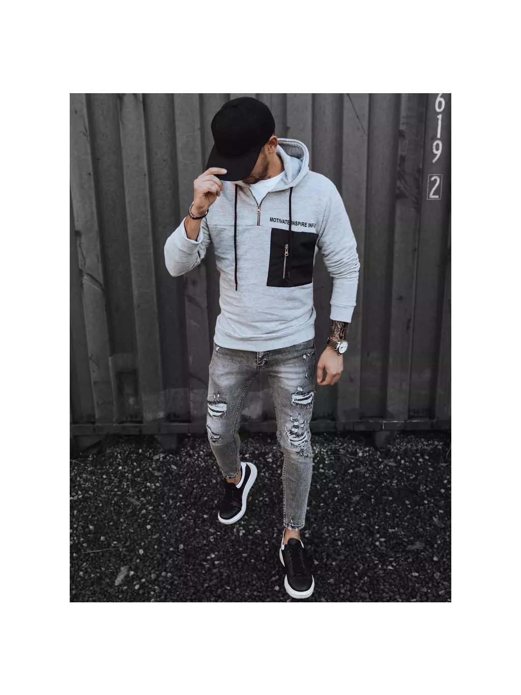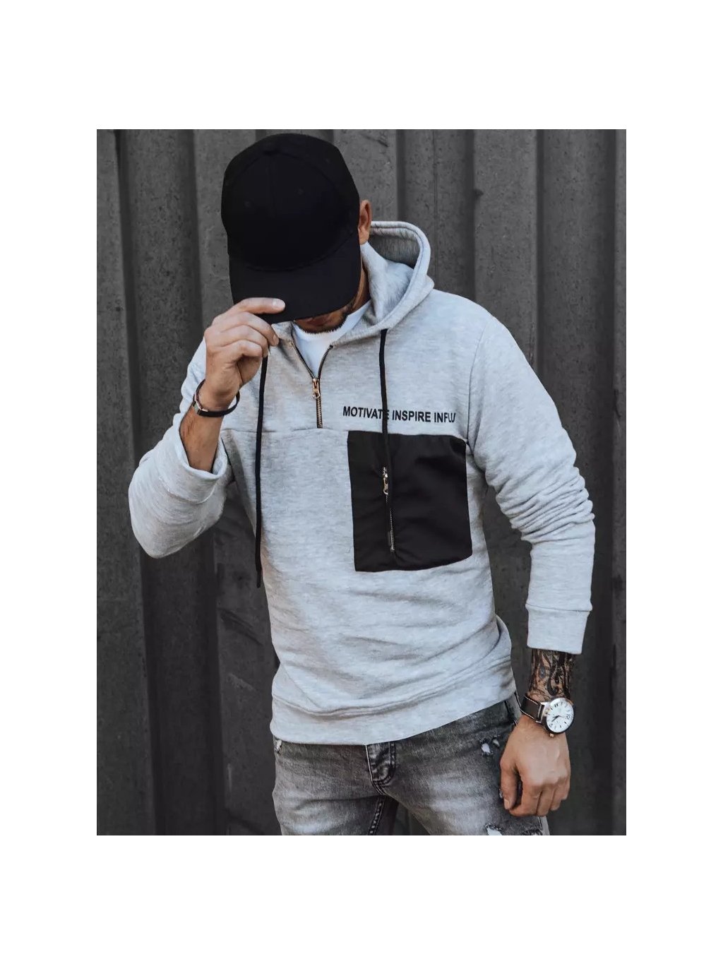 Világosszürke cipzáras pulóver