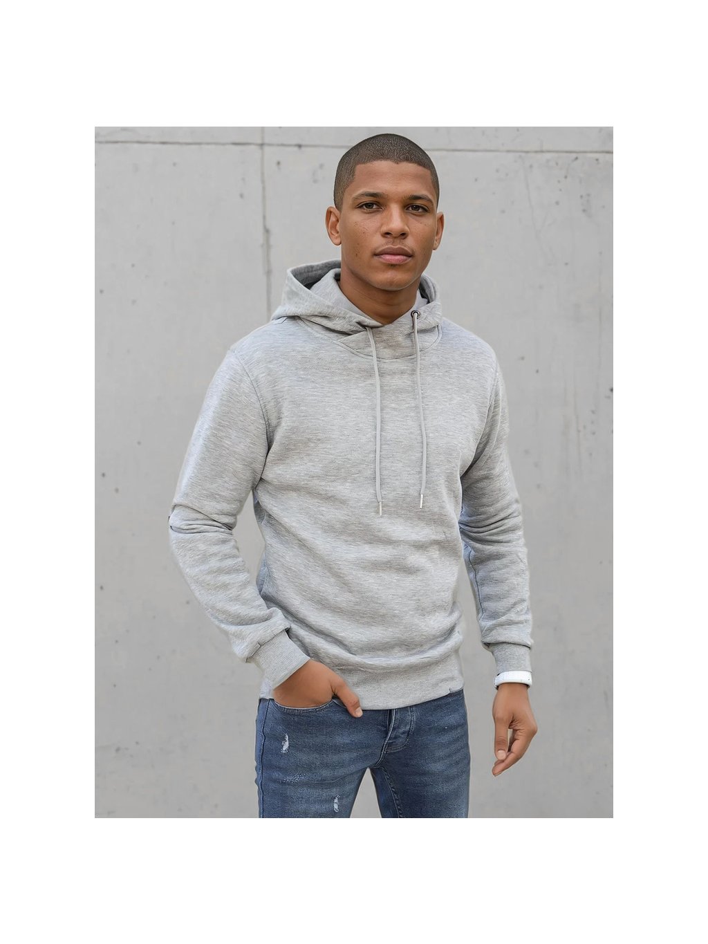 Világosszürke kapucnis pulóver