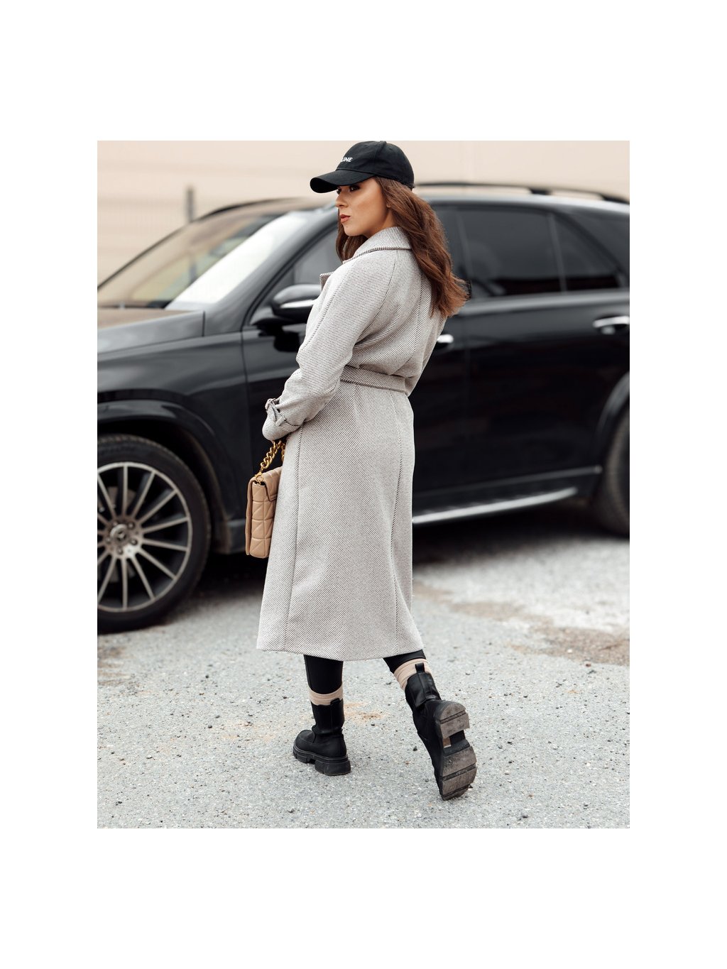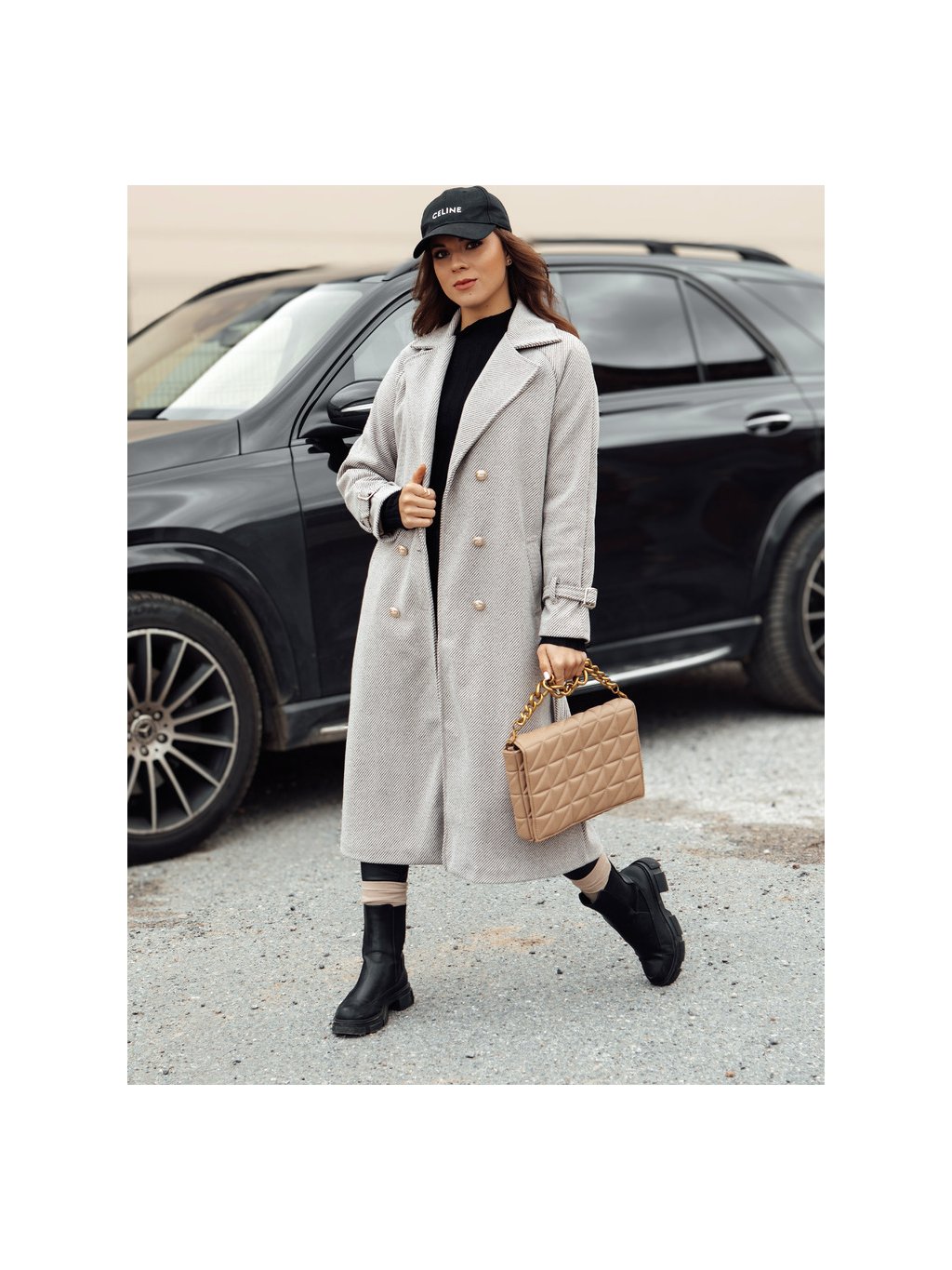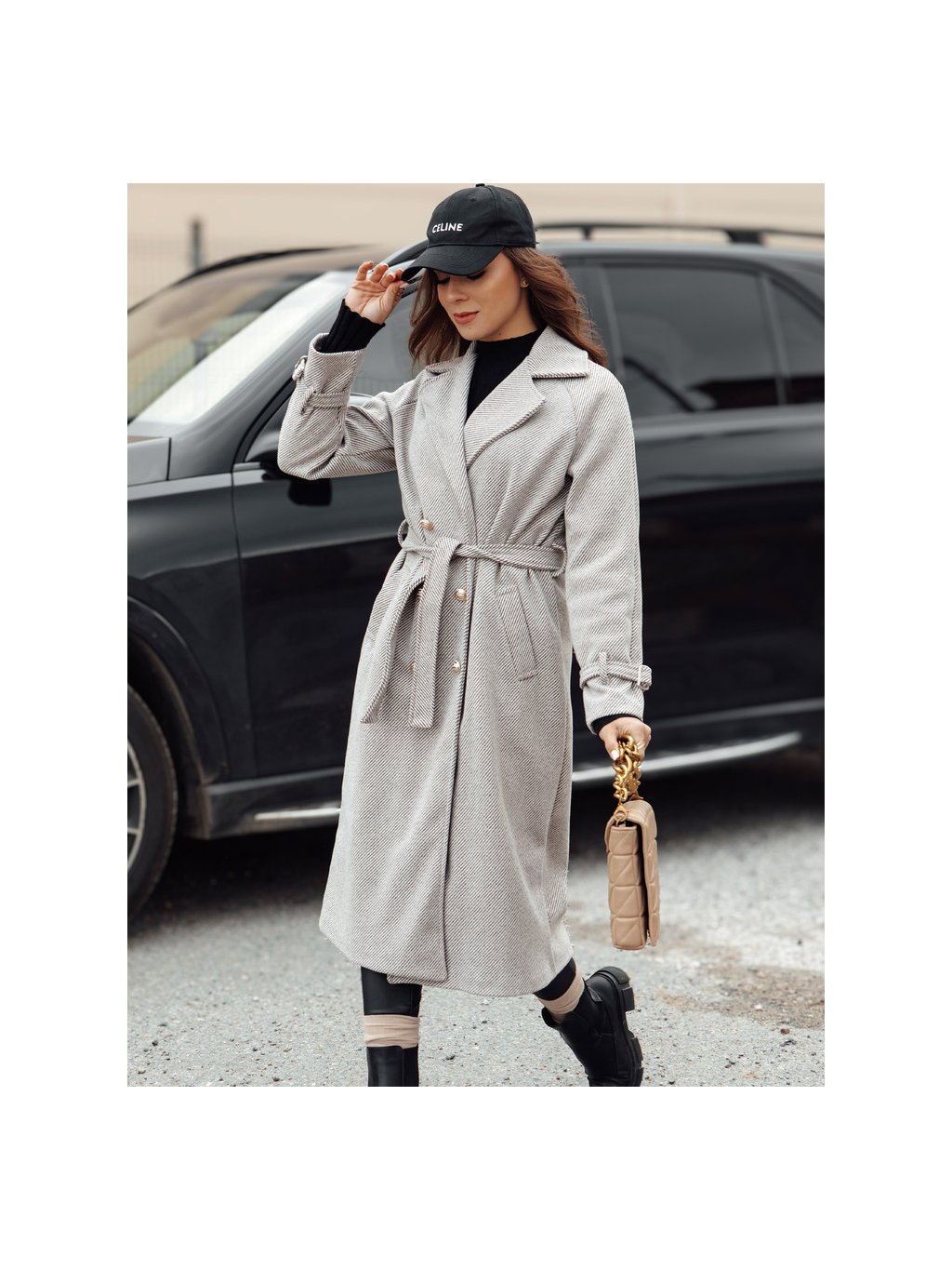 Világosszürke női hosszú oversize CAMELLYN kabát