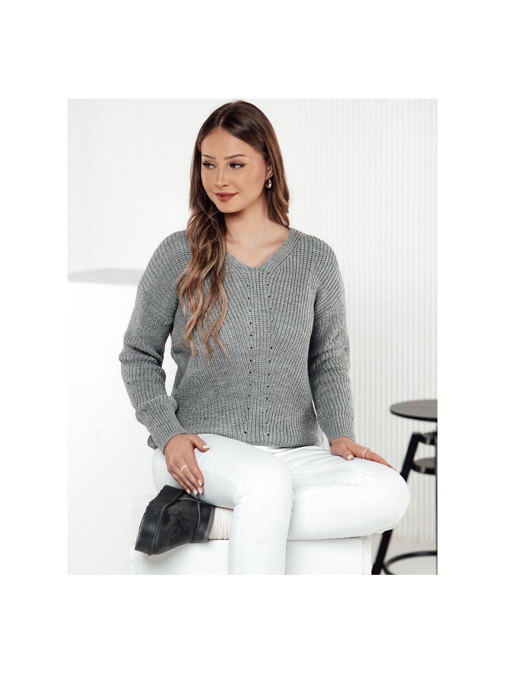 Világosszürke női pulóver MONAVIA