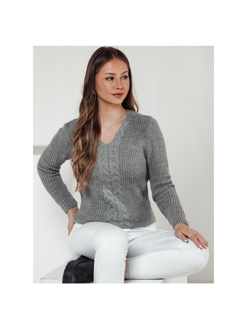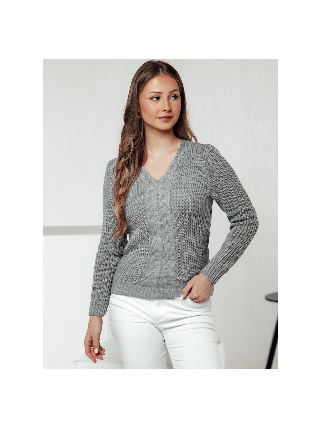 Világosszürke női pulóver V-nyakkivágással CASVINA