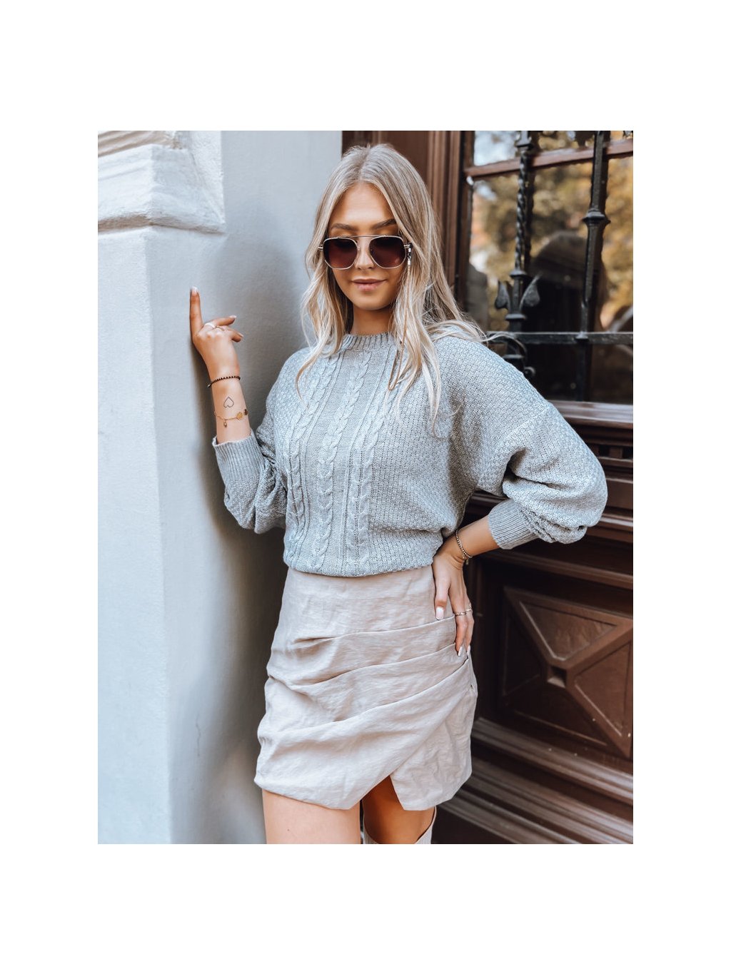 Világosszürke oversize pulóver fonott mintával CAMELLIA