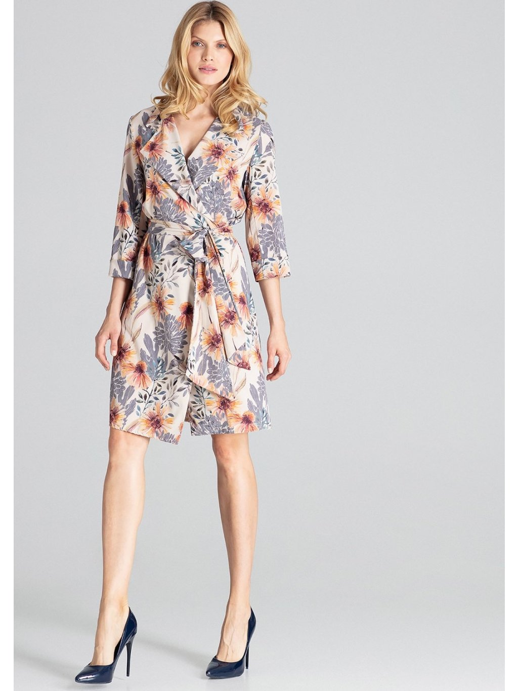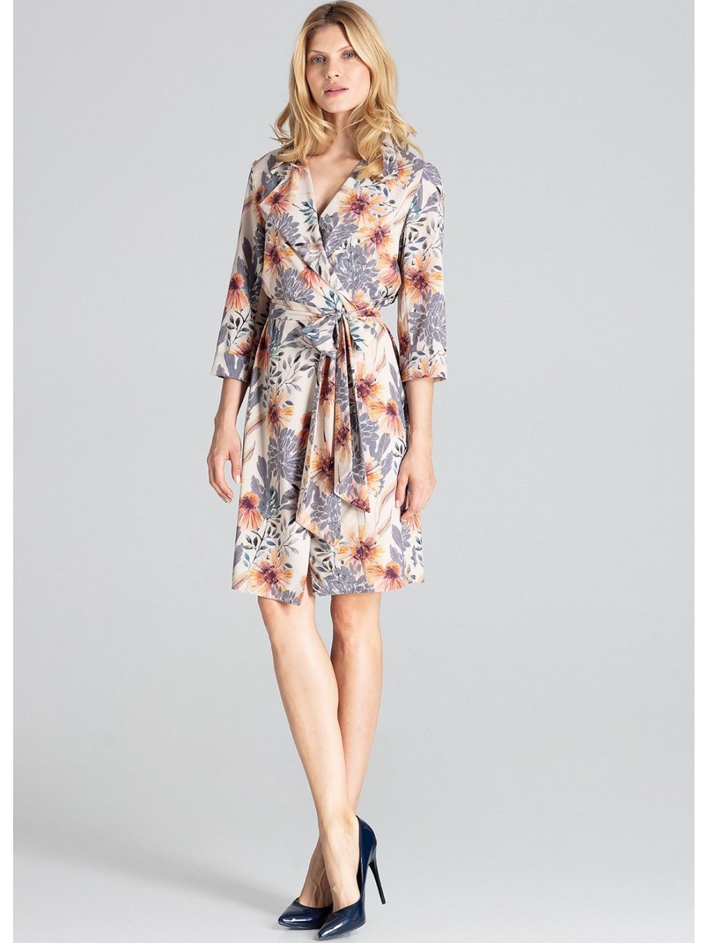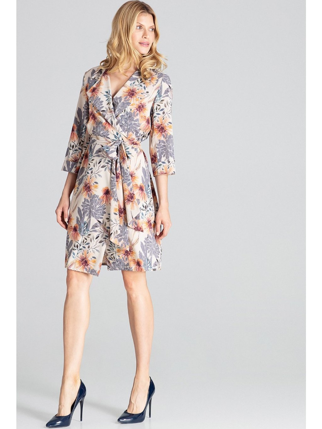 Virágos ruha wrap nyakkivágással M680 Pattern