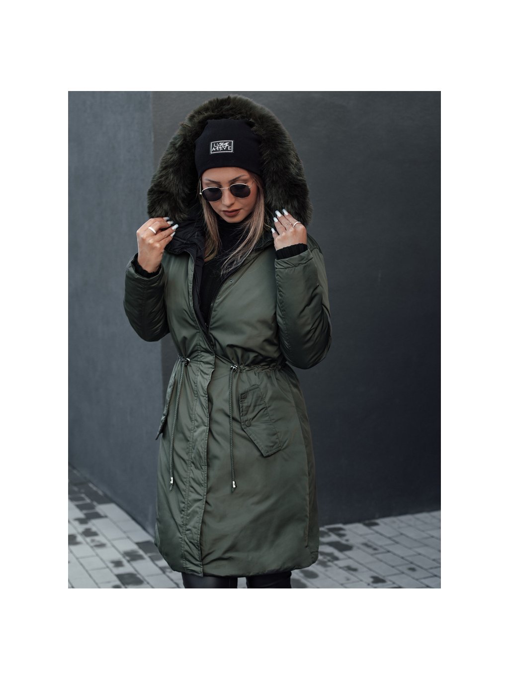 Zöld-fekete női téli kifordítható kabát TRENDNEL