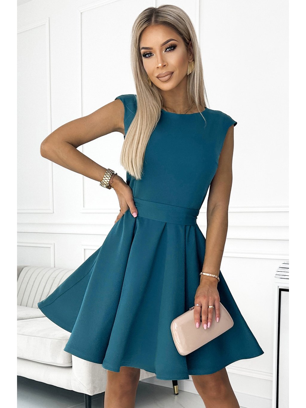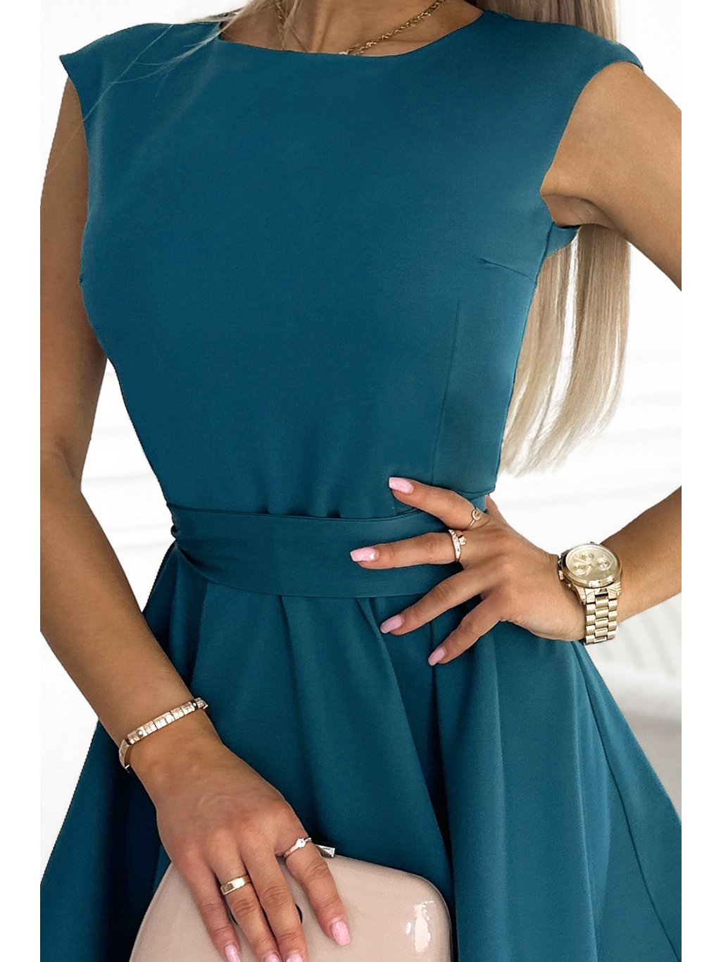 Elegáns zöld-kék hosszabbított ruha XENIE
