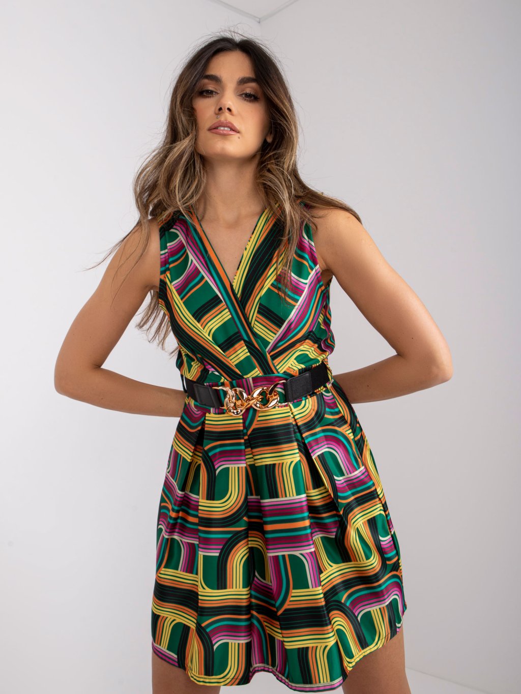 Zöld mintás miniruha övvel