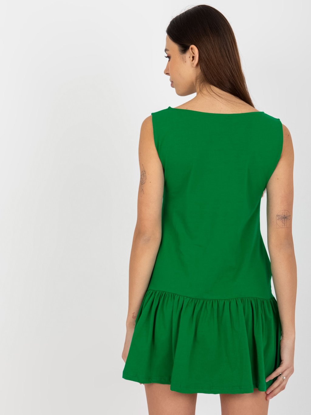 Zöld sima mini ruha fodros